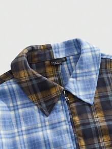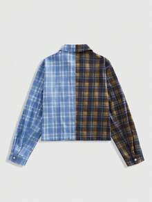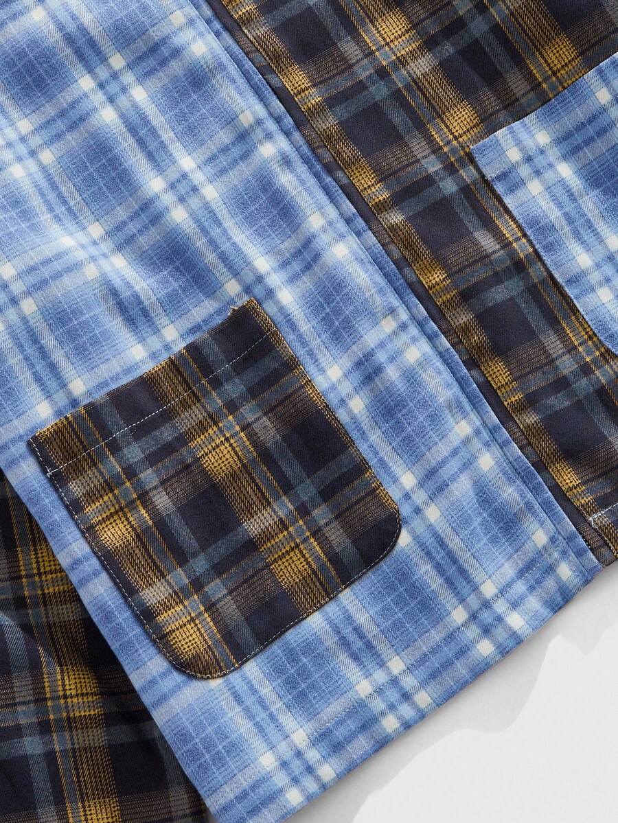 Street Life Men's Plaid Patchwork Loose Fit Long Sleeve Overcoat, Fall/Winter