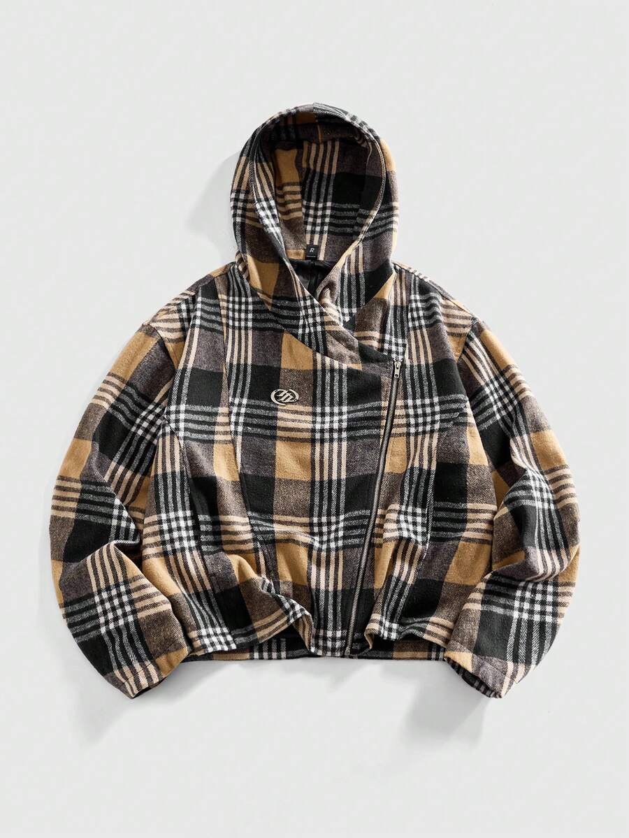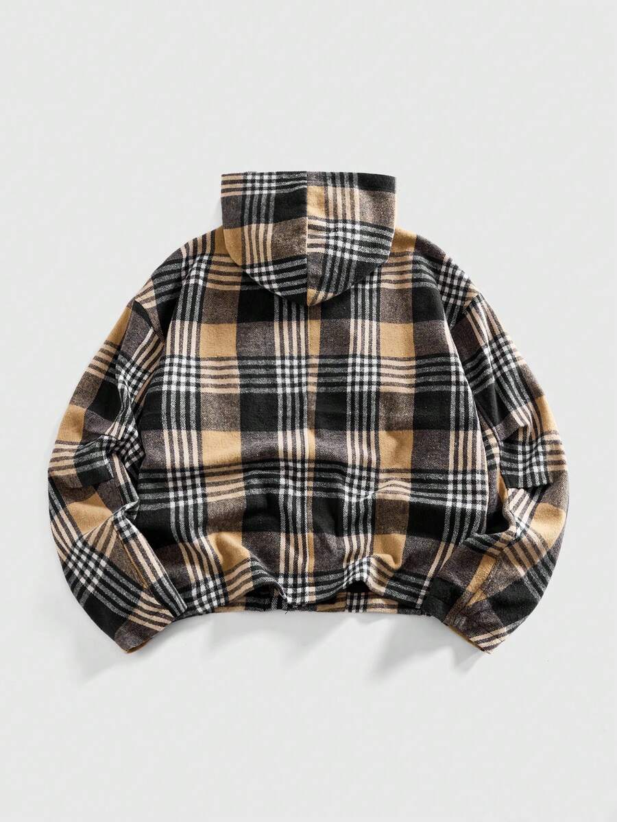 Street Life Men's Plaid Print Pockets Hooded Long Sleeve Overcoat, Fall/Winter