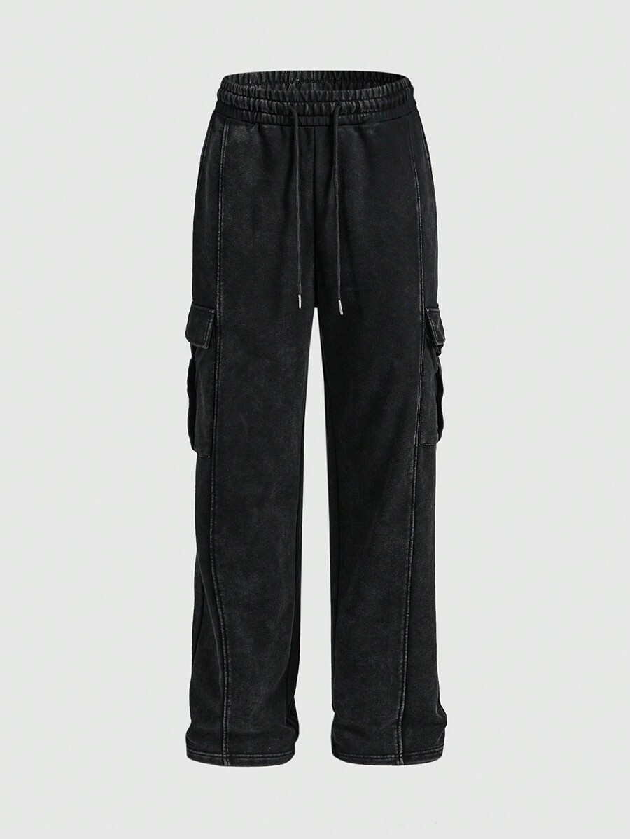 Street Life Men's Plain Color Drawstring Waist Cargo Pocket Straight Loose Sweatpants