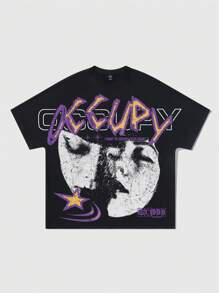 Street Life Men's Portrait Print Loose Fit Short Sleeve T-Shirt, Street Vintage Style