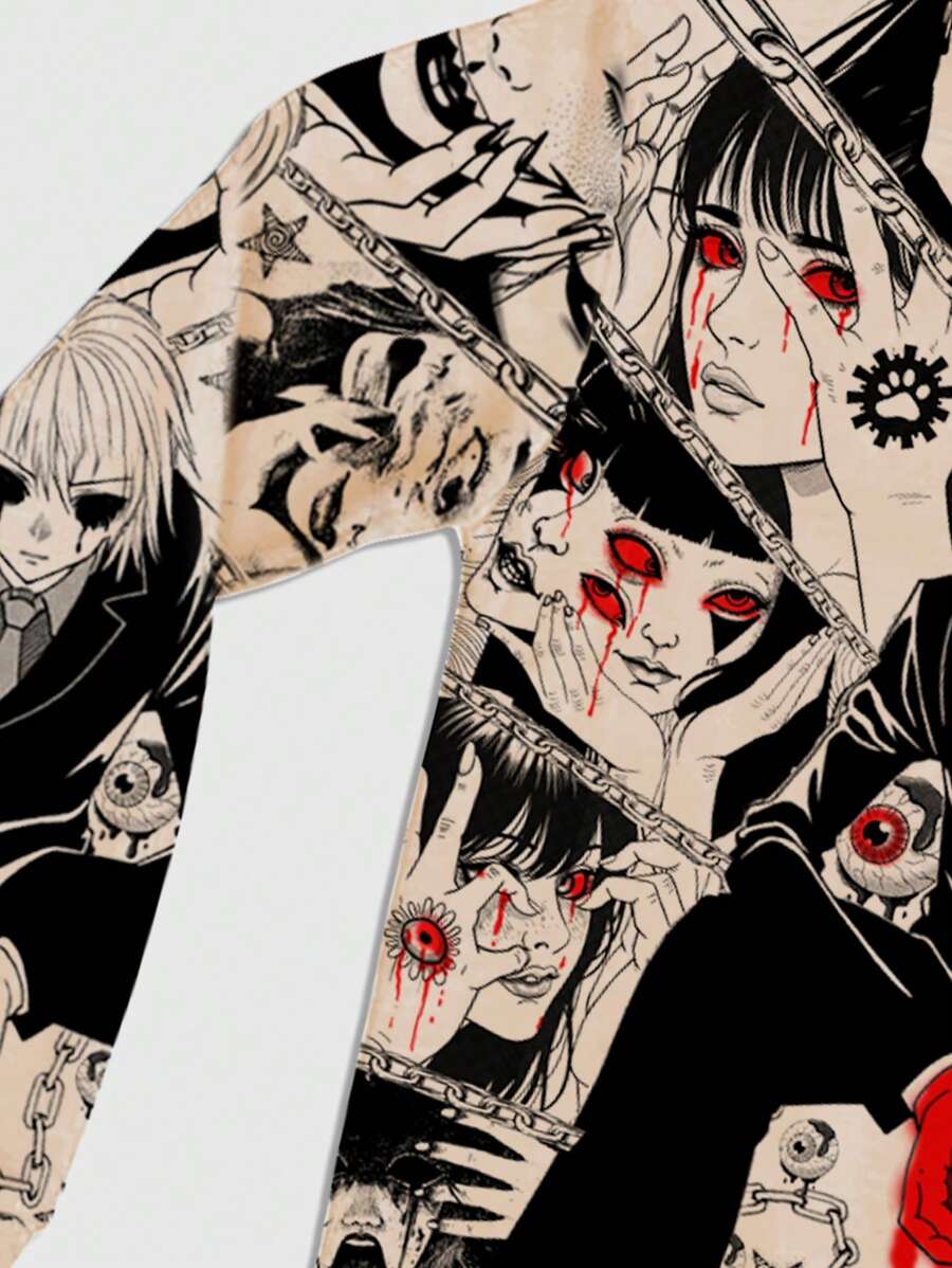 Street Life Men's Portrait Print Open Sweatshirt Sweatshirt, Casual Everyday Wear