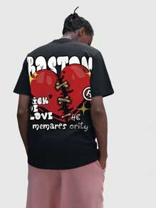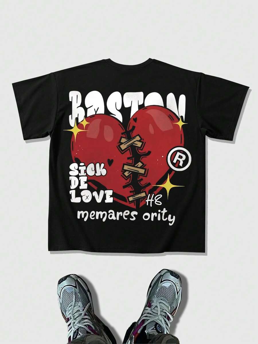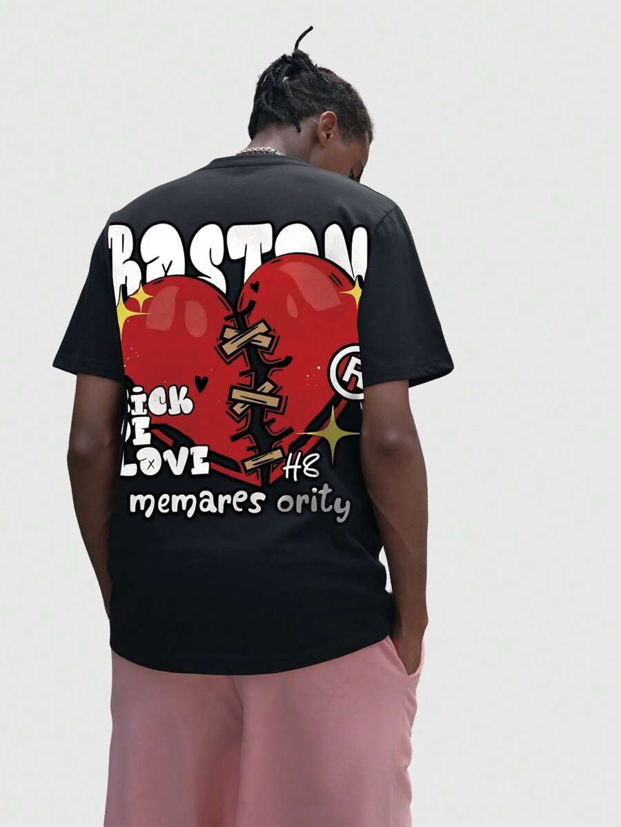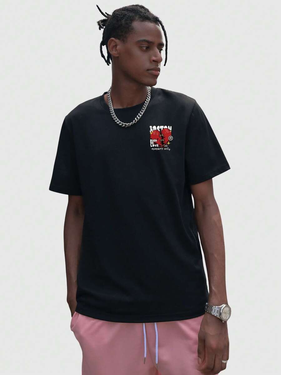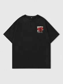Street Life Men's Portrait Print Short Sleeve T-Shirt, Suitable For Daily Wear, Spring/Summer