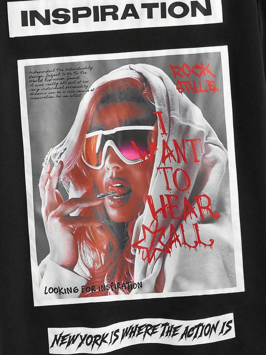 Street Life Men's Portrait Print Short Sleeve T-Shirt, Suitable For Everyday Wear In Spring/Summer