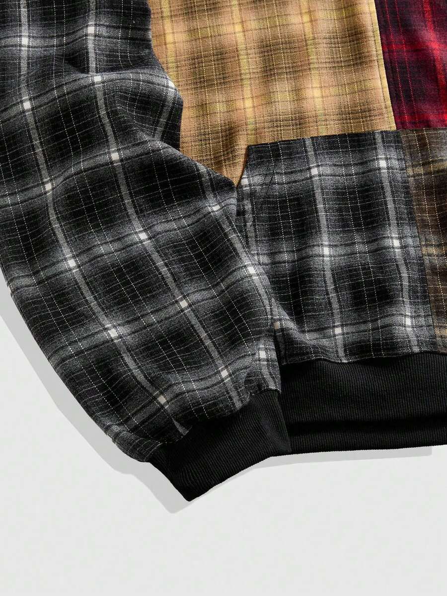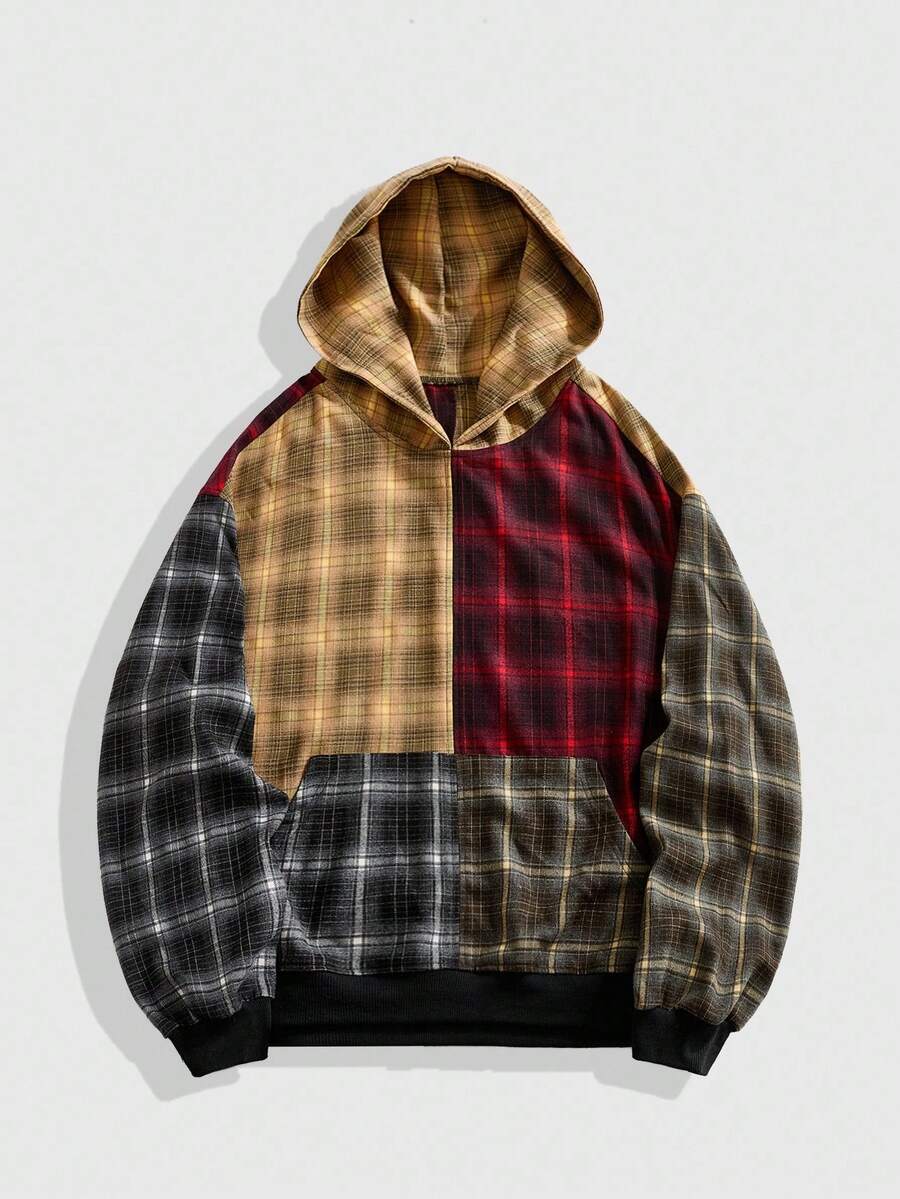 Street Life Men's Prep Plaid Loose Hooded Overcoat, Retro Street Style, Fall/Winter