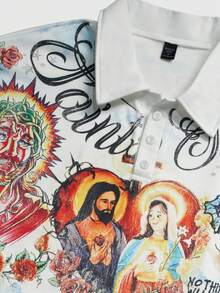 Street Life Men's Printed Long Sleeve Striped Polo Collar T-Shirt, Casual College Style Top