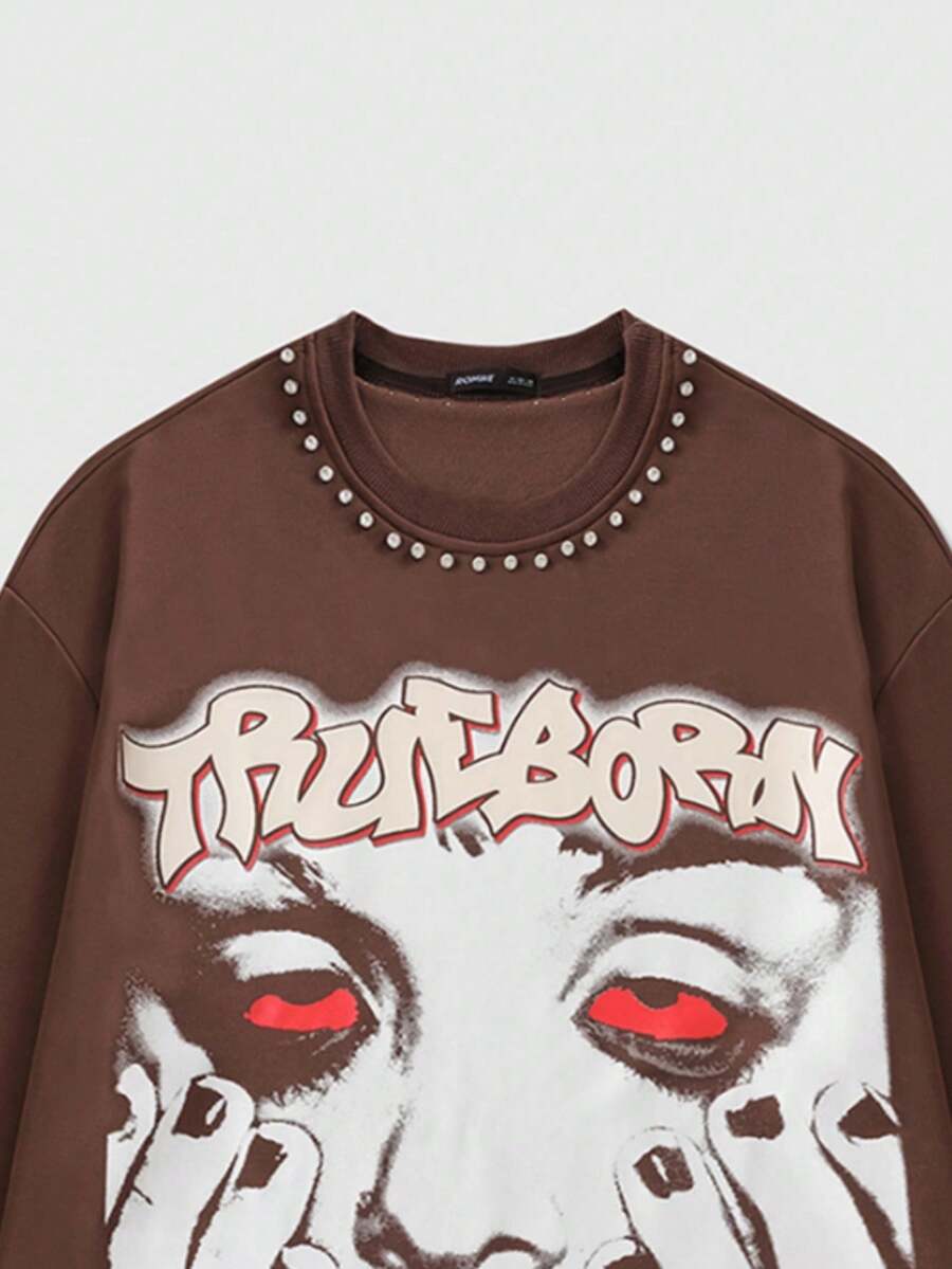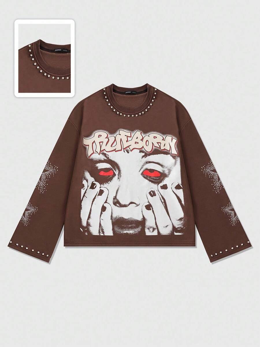 Street Life Men's Printed Long Sleeve T-Shirt, Loose Cropped Fit, For Fall