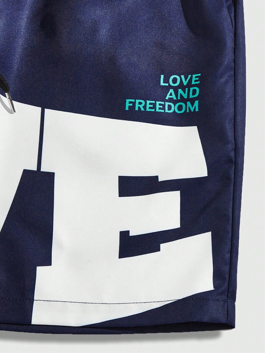 Street Life Men's Printed Slogan Shorts, Suitable For Daily Wear In Spring And Summer