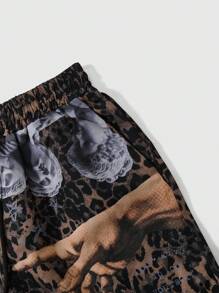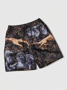 Street Life Men's Religious Figure Printed Leopard Woven Casual Shorts