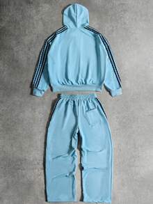 Street Life Men's Retro Contrast Stripe Hoodie And Sweatpants Set