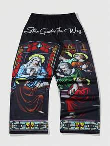 Street Life Men's Retro Religious Figure Print Straight Leg Pants