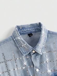 Street Life Men's Rhinestone Decor Avant Long Sleeve Single-Breasted Denim Jacket