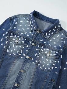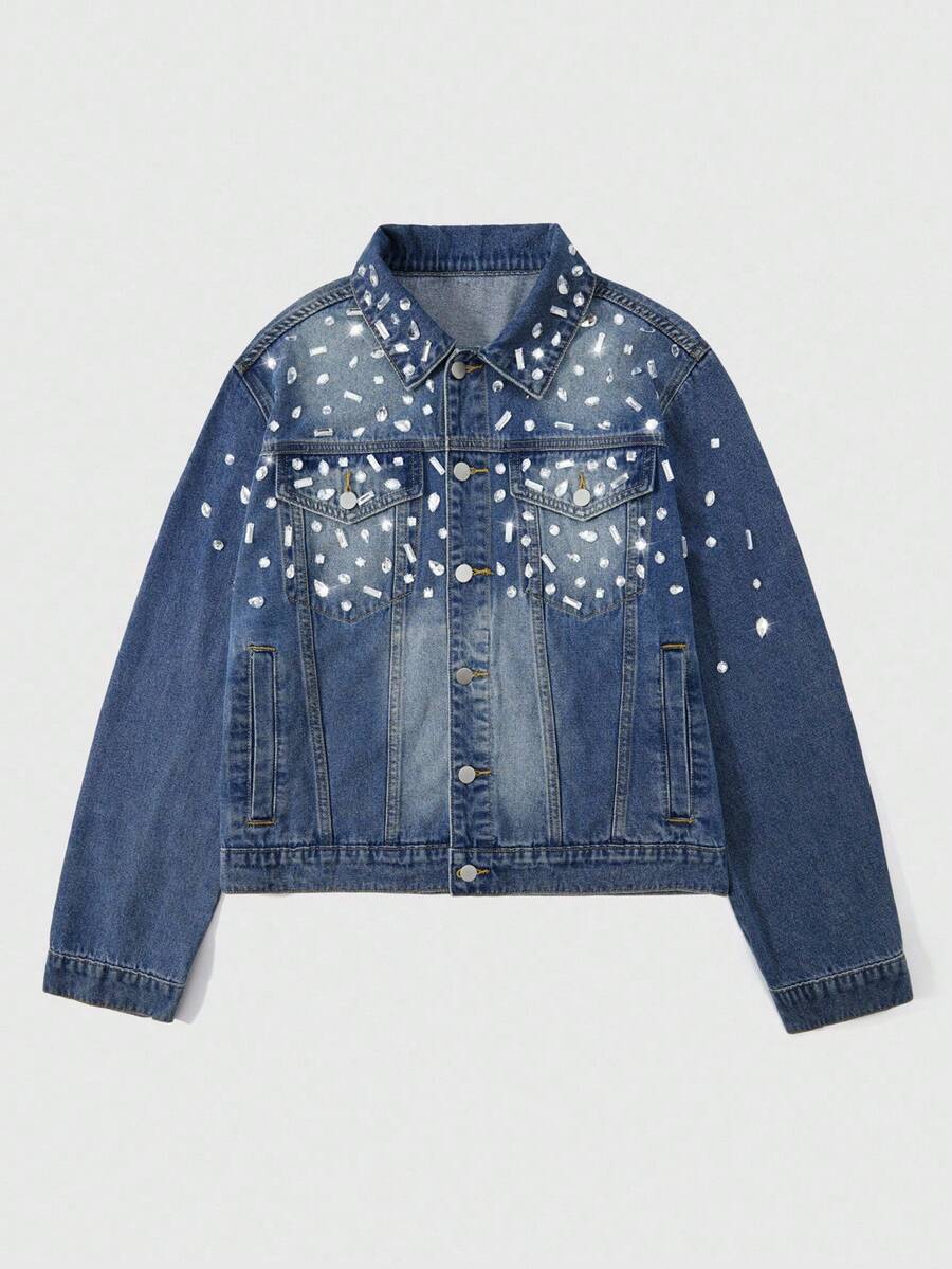 Street Life Men's Rhinestone Decor Front Button Long Sleeve Denim Jacket