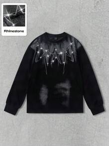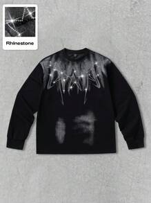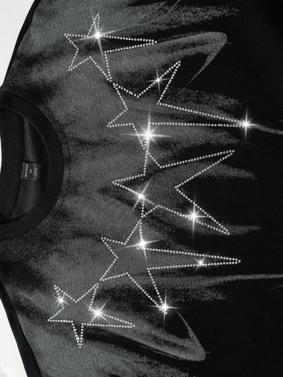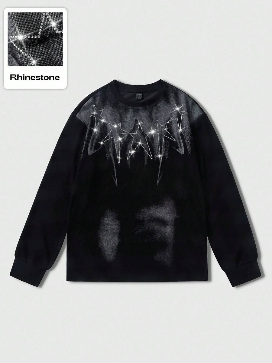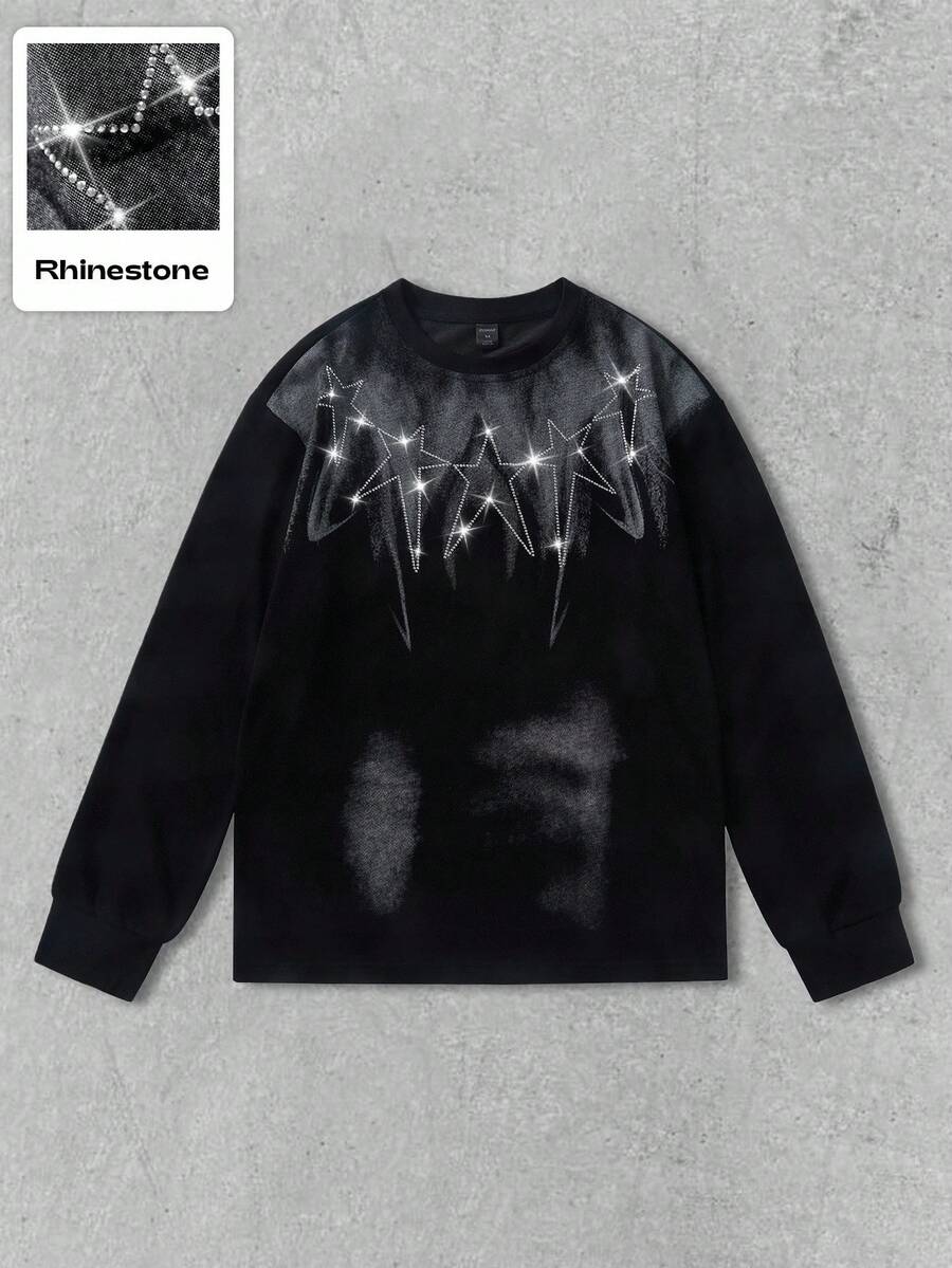 Street Life Men's Rhinestone Dotted Stars Graphic Pullover Sweatshirt, Suitable For Everyday Wear In Autumn/Winter