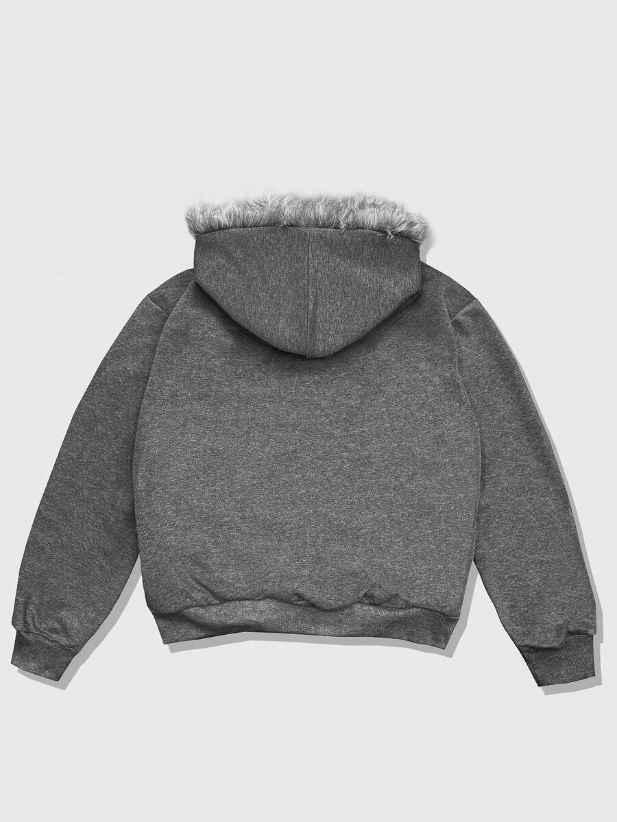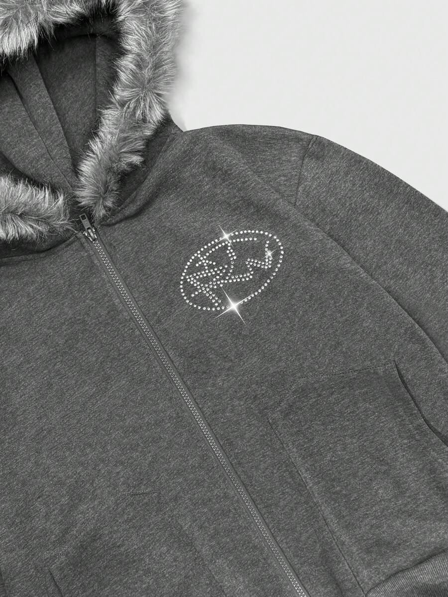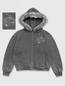 Street Life Men's Rhinestone Letter Graphic Zip-Up Hoodie With Fur Collar