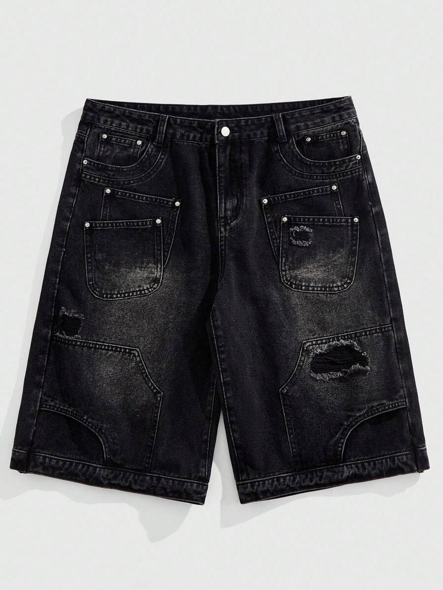 Street Life Men's Ripped Casual Multi-Pocket Loose Denim Shorts