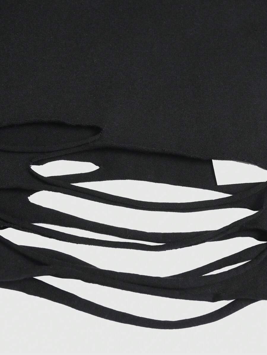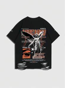 Street Life Men's Ripped Street Print Short Sleeve T-Shirt, Suitable For Daily Wear In Spring And Summer (Ripped Location Is Random)