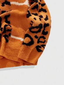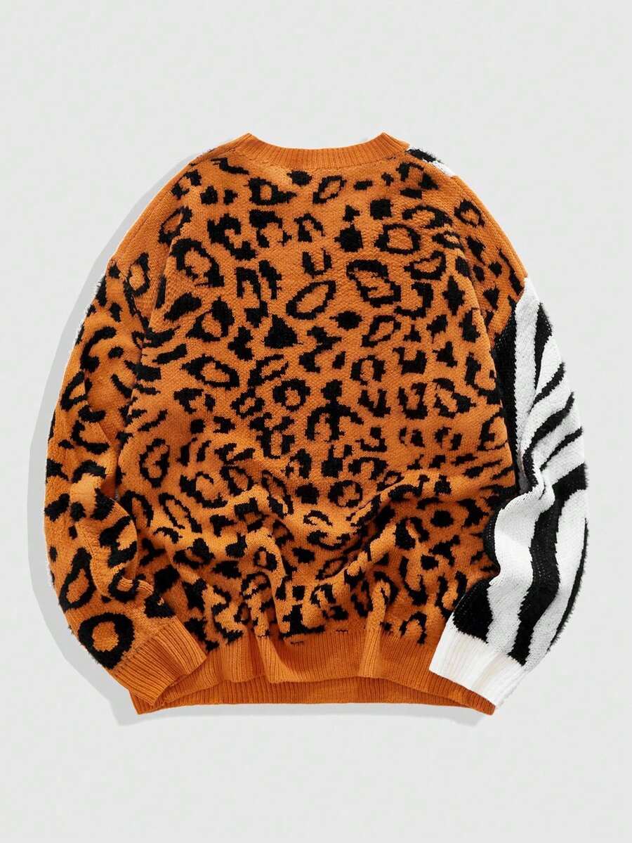 Street Life Men's Round Neck Animal Leopard Print Patchwork Fuzzy Knit Sweater, Fall/Winter