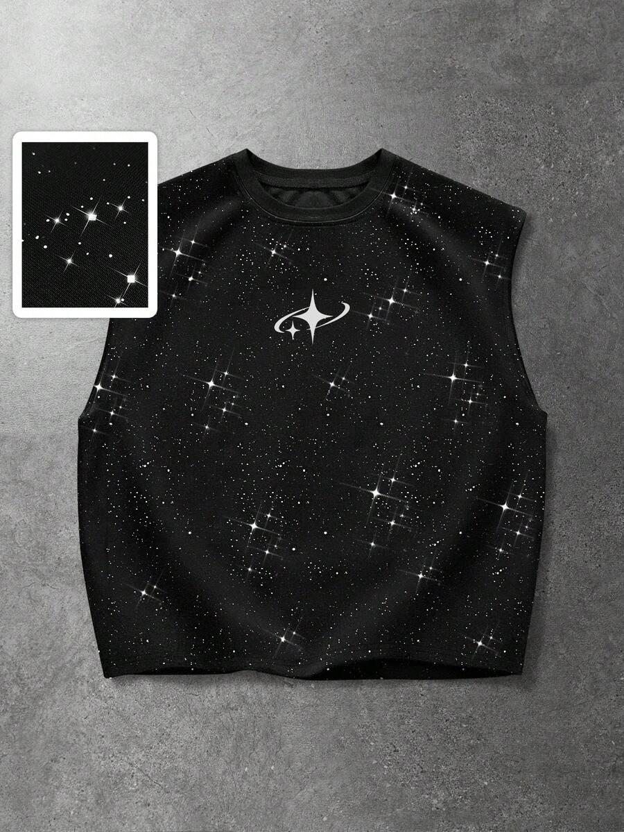 Street Life Men's Shiny Graphic Print Loose Fit Crew Neck Casual Tank Top