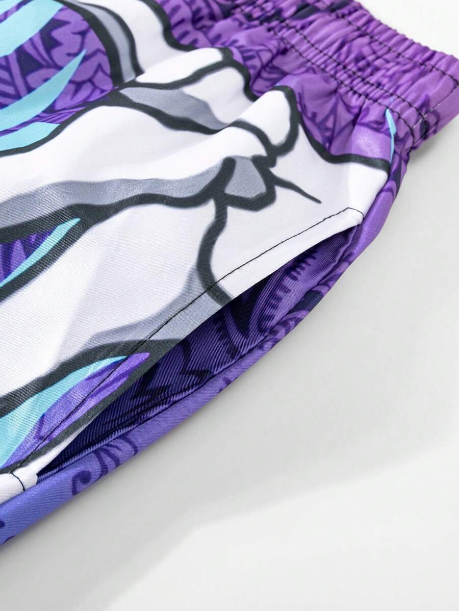 Street Life Men's Short Skeleton Hands Printed Drawstring Waist Shorts, School