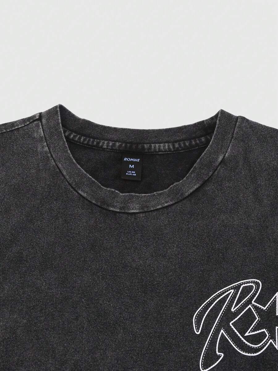 Casual Men's Simple Letter & Pentagram Print Round Neck Top