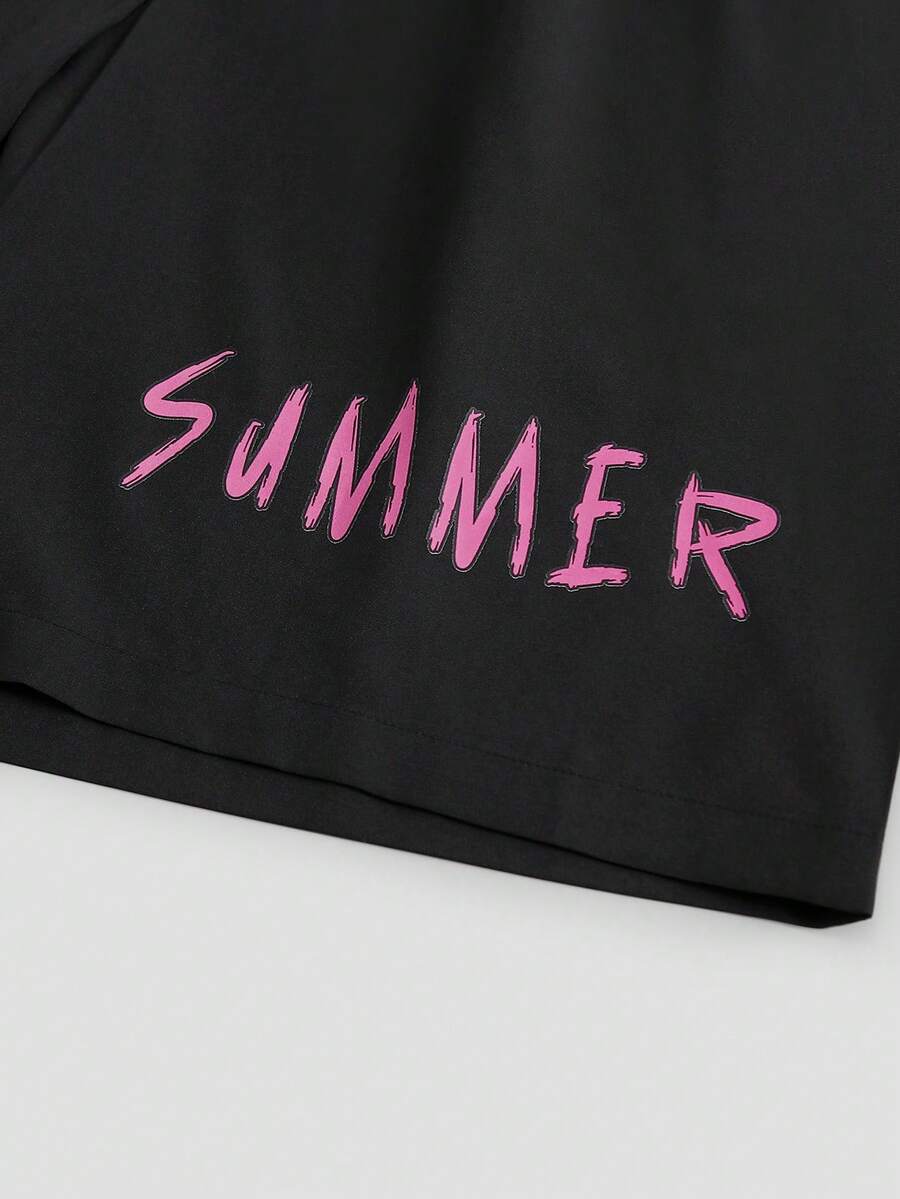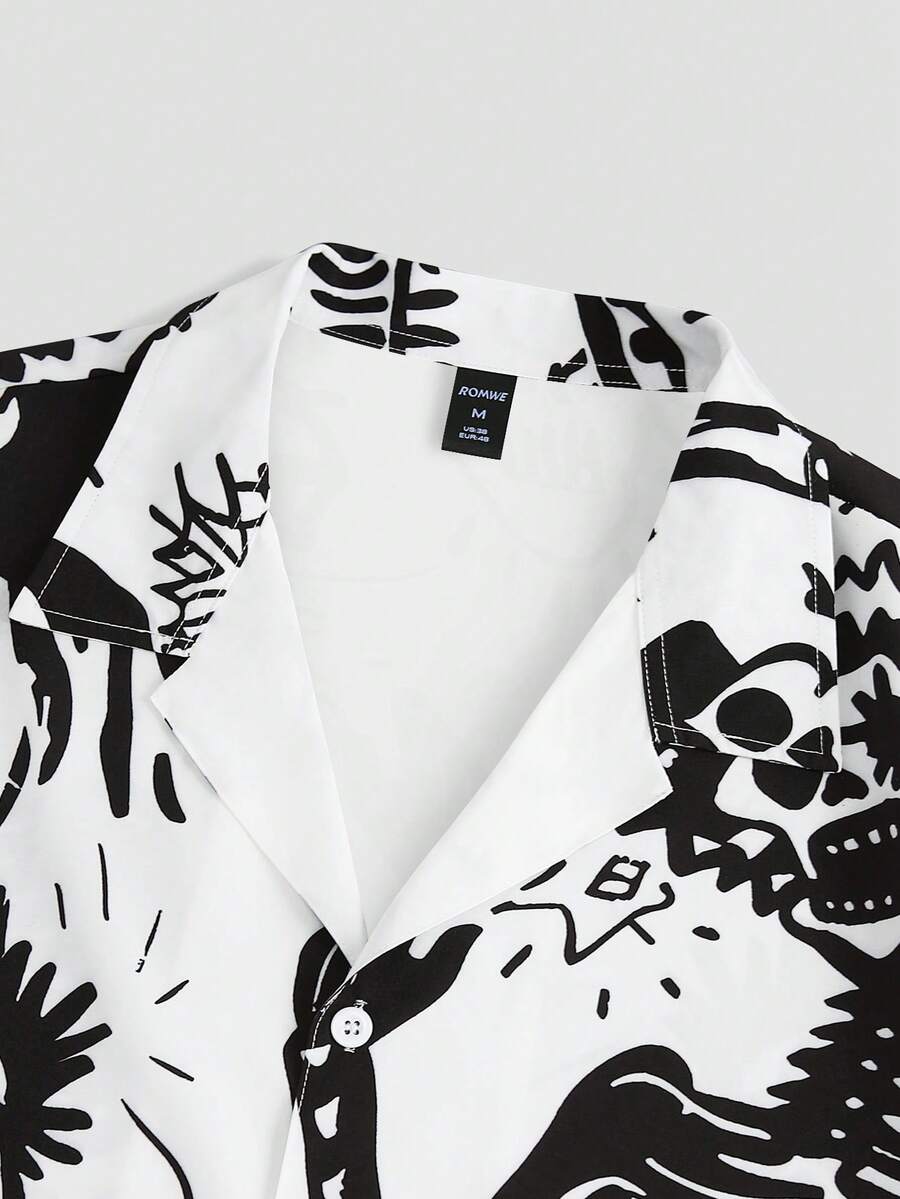 Street Life Men's Skull Printed Button-Up Short Sleeve Shirt And Letter Printed Drawstring Shorts 2pcs/Set, Suitable For Spring And Summer