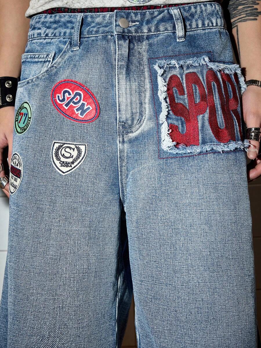 Street Life Men's Slogan Logo Embroidered Accent Drawstring Denim Shorts, Collegiate Style
