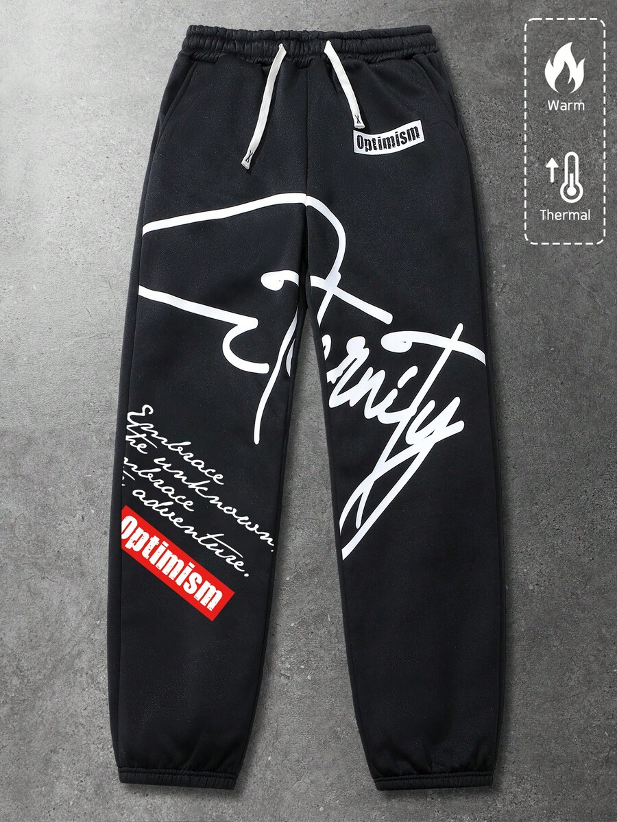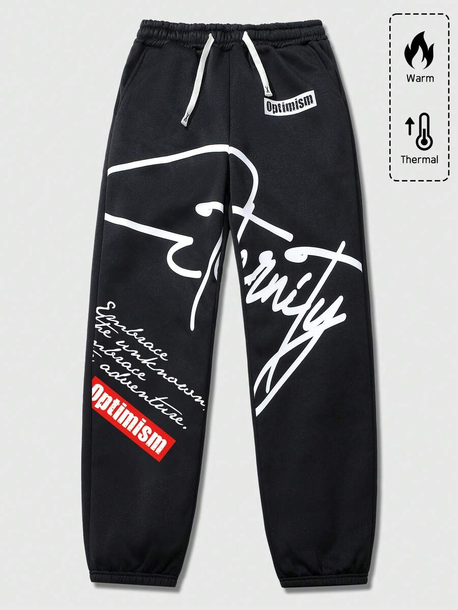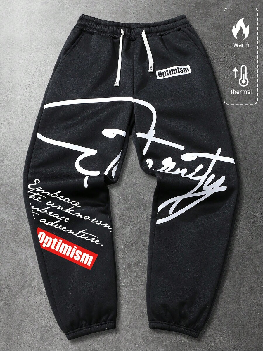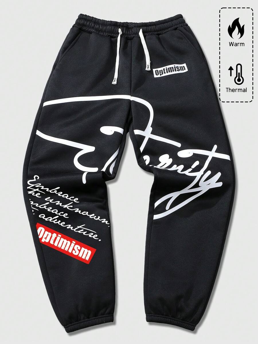 Street Life Men's Slogan Print Sweatpants, Suitable For Everyday Wear, Spring/Summer