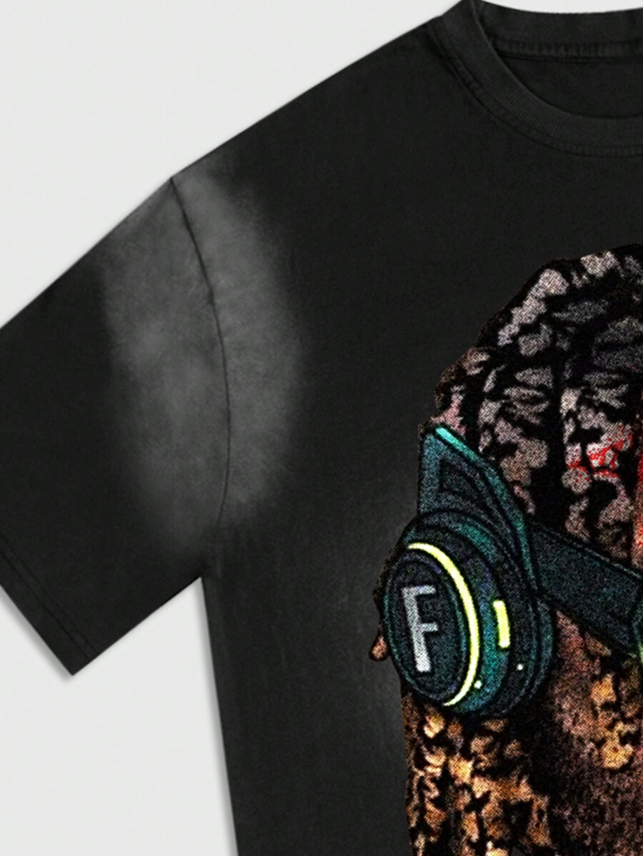 Street Life Men's Snowflake & Angel Print Short Sleeve T-Shirt, Suitable For Spring & Summer