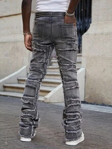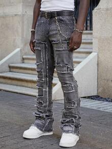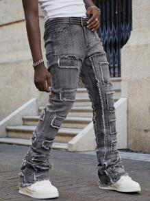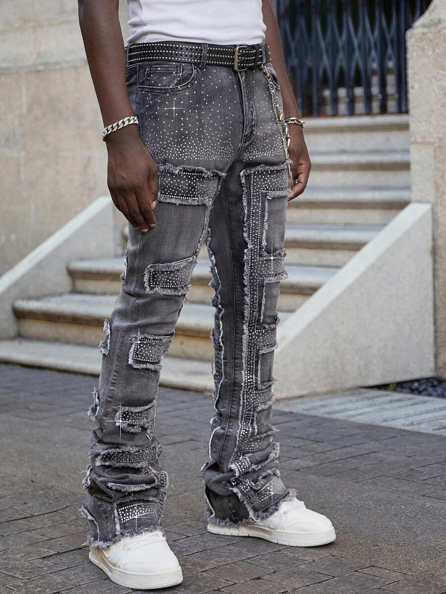 Street Life Men's Sparkling Diamond Layered Flared Distressed Jeans