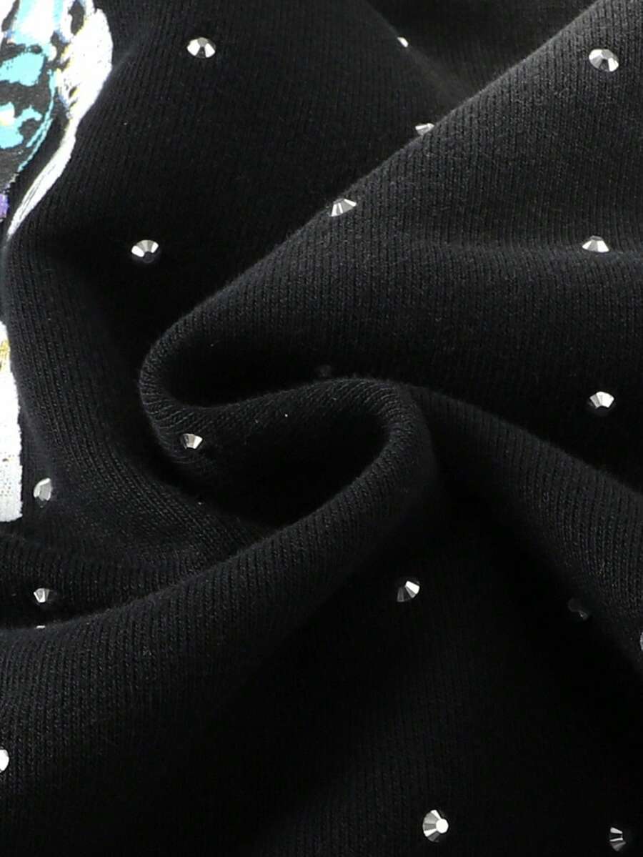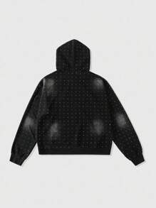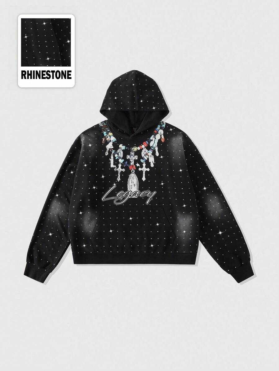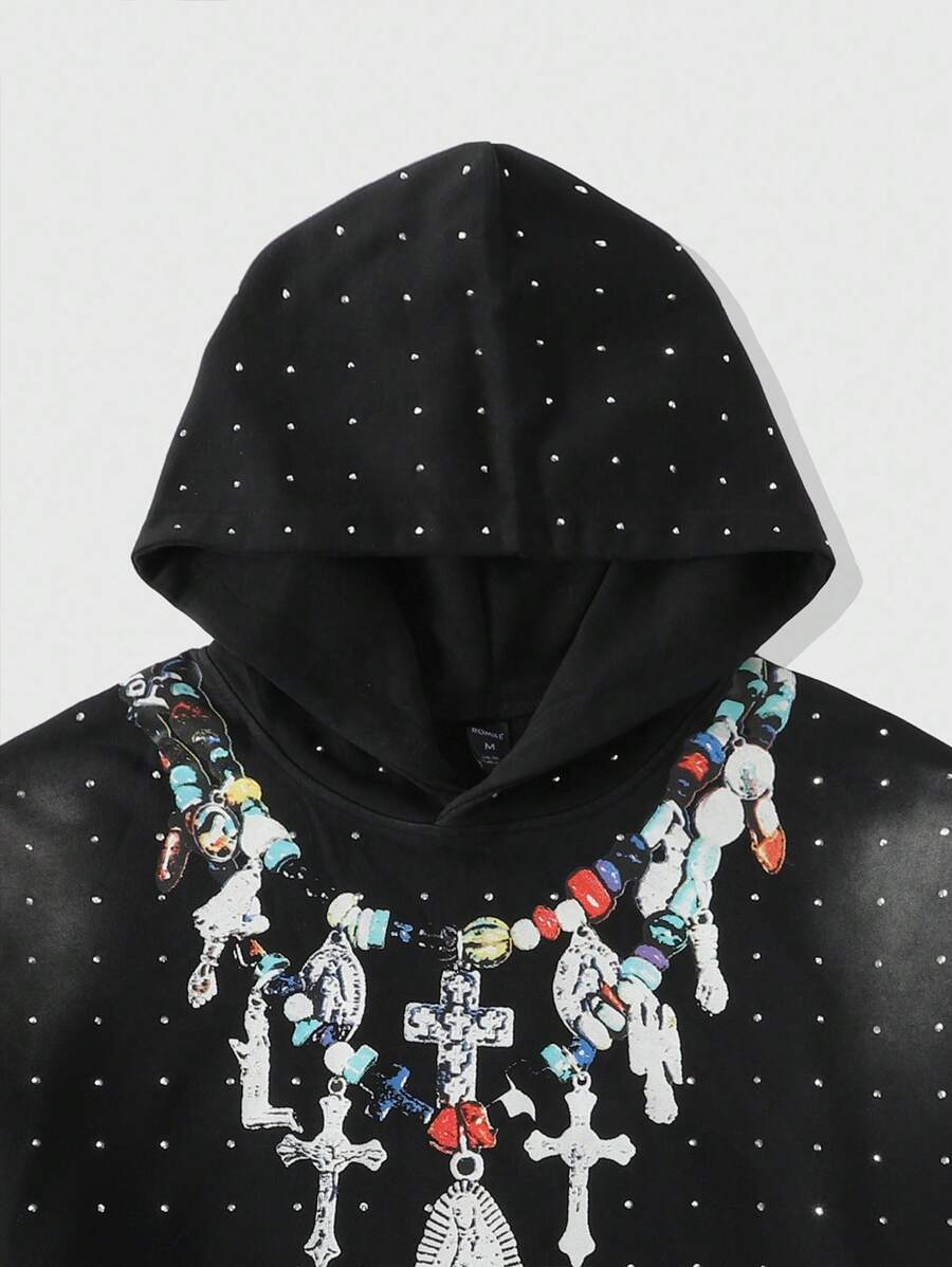 Street Life Men's Sparkling Diamond Washed Print Hoodie, Loose Cropped Style