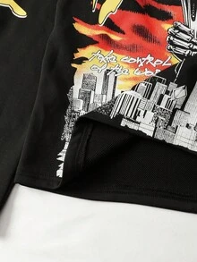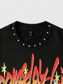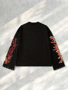 Street Life Men's Sparkling Skull Diamond Print Long Sleeve T-Shirt, Loose Cropped Fit, For Fall