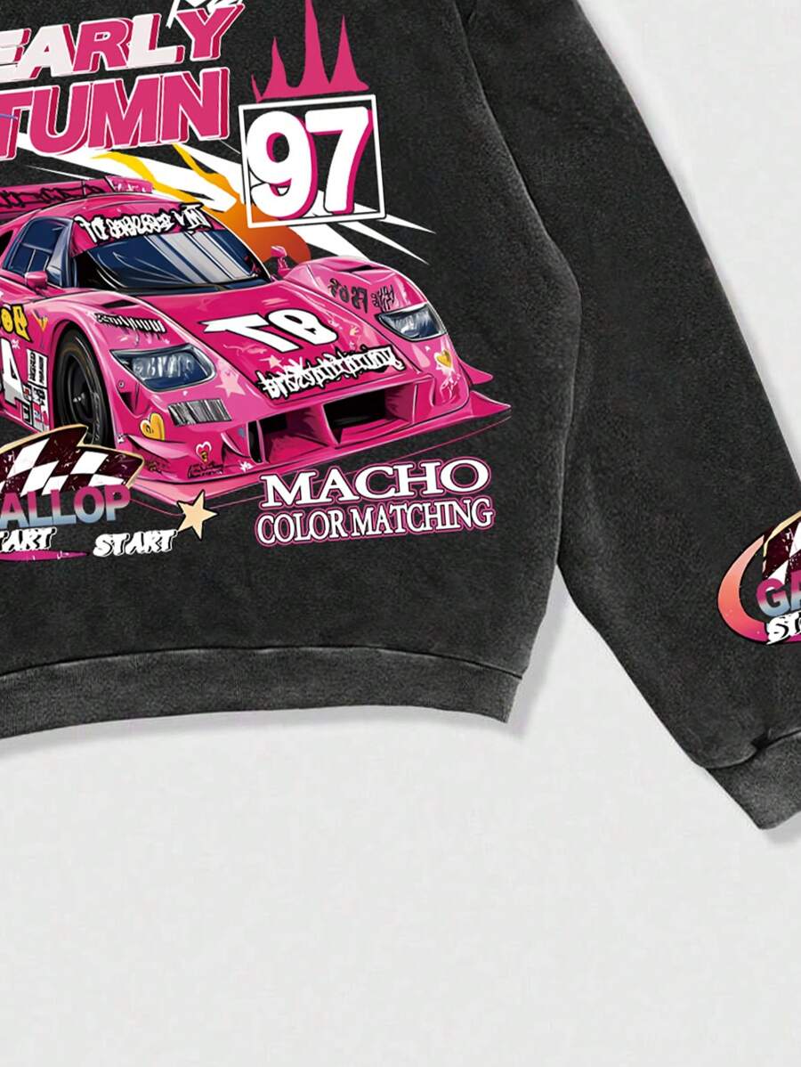 Street Life Men's Spring Autumn Casual Streetwear Race Car Printed Washed Hoodie