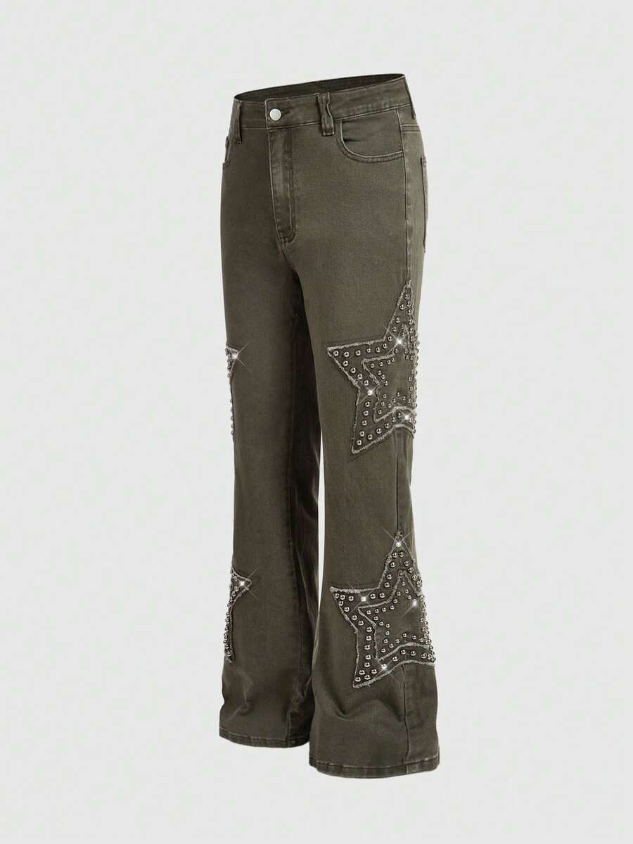 Street Life Men's Star Green Skinny Beaded Denim Jeans