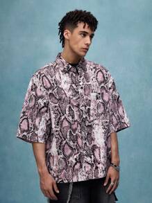 Street Life Men's Street Fashion Boxy Fit Snake Skin Pattern Denim Shirt, Summer, Halloween