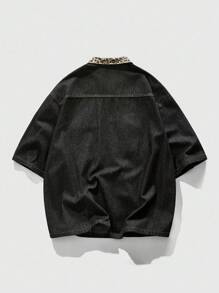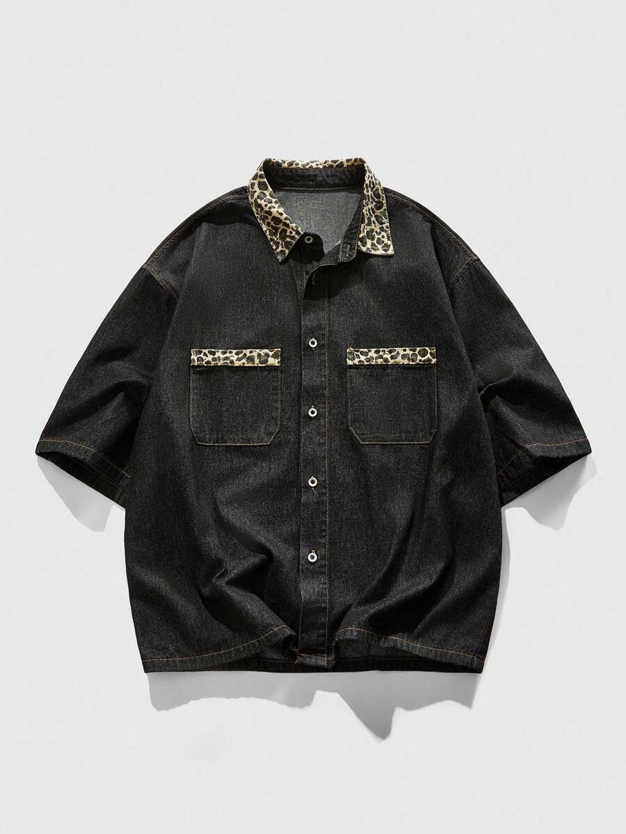 Street Life Men's Street Fashion Casual Denim Shirt With Leopard Print Fabric