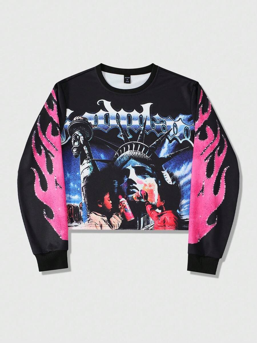 Street Life Men's Street Fashion Printed Crew Neck Pullover Sweatshirt, Fall
