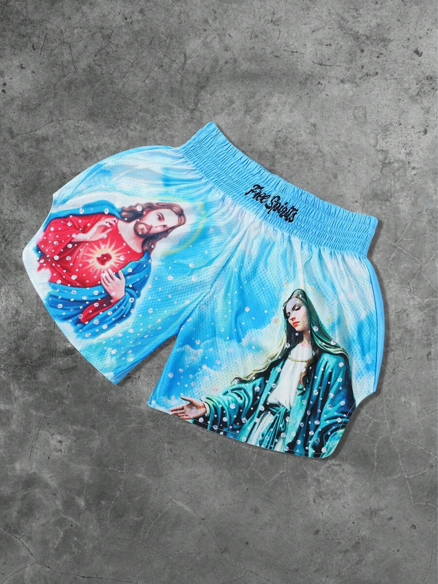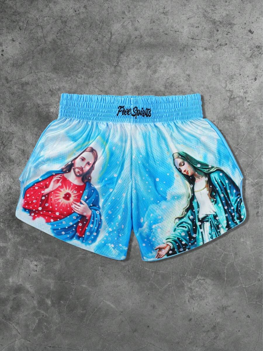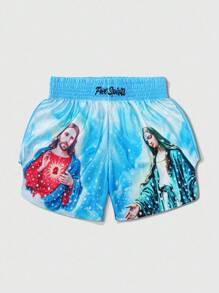 Street Life Men's Street Style Jesus Virgin Mary Graphic Boxing Shorts