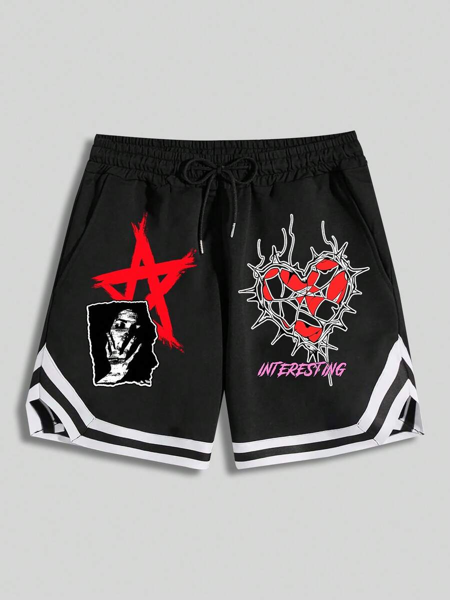 Street Life Men's Street Style Printed Short Sleeve T-Shirt And Shorts Set, Suitable For Daily Wear In Spring And Summer