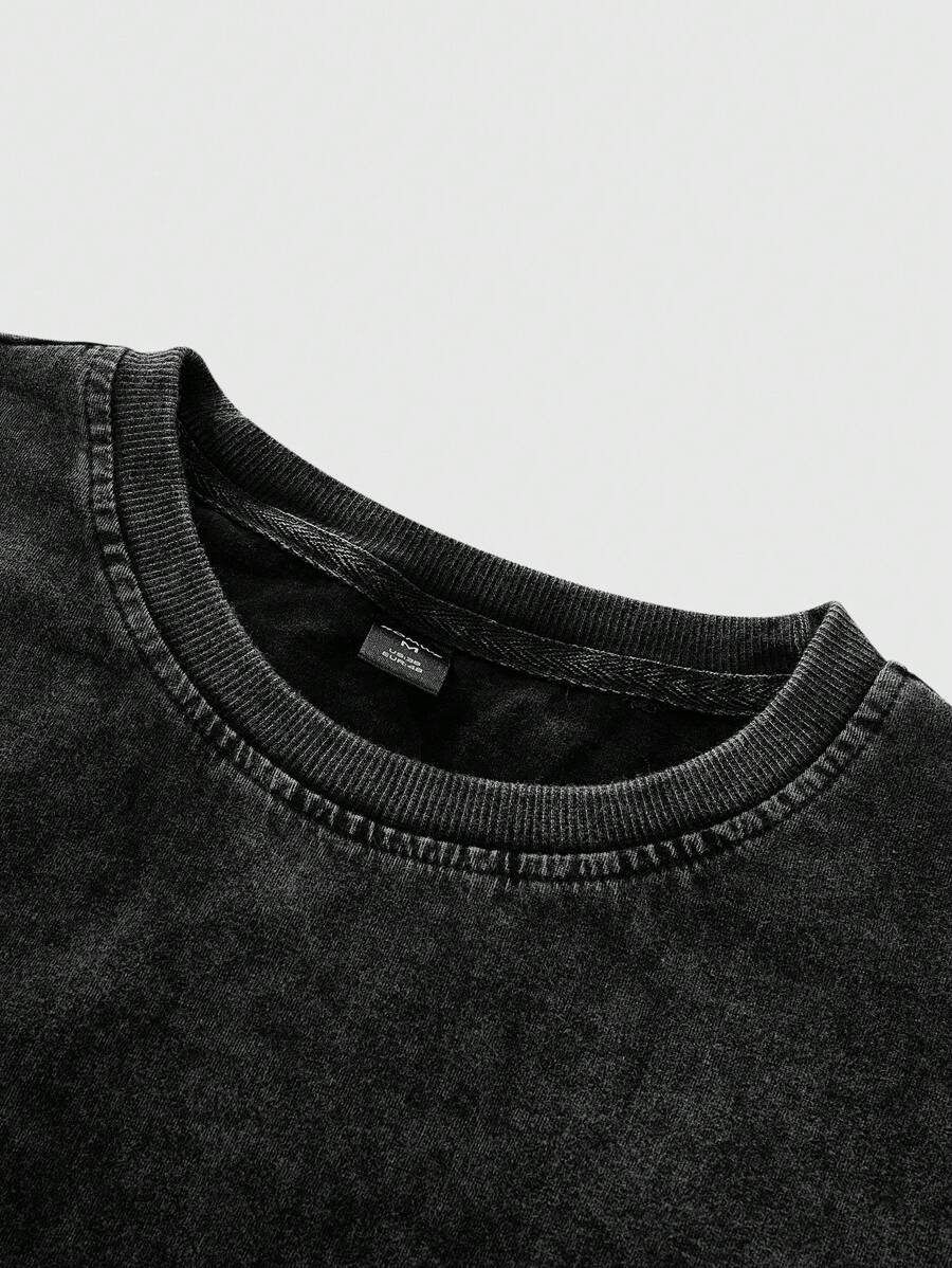 Prep Men's Street Washed Black Casual Fashion Number T-Shirt