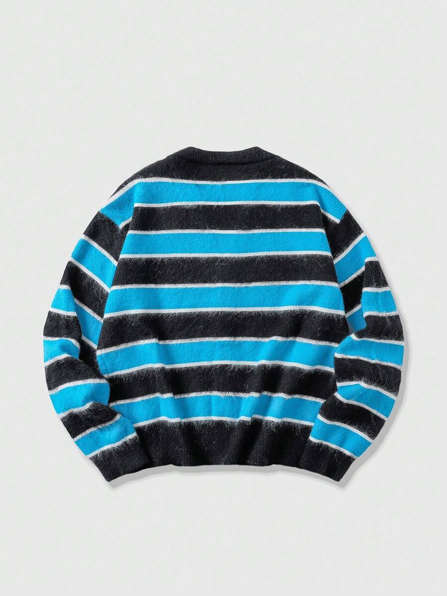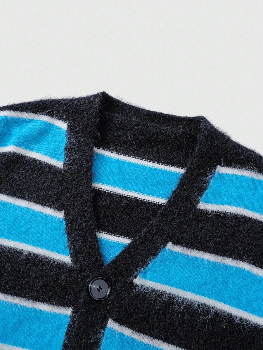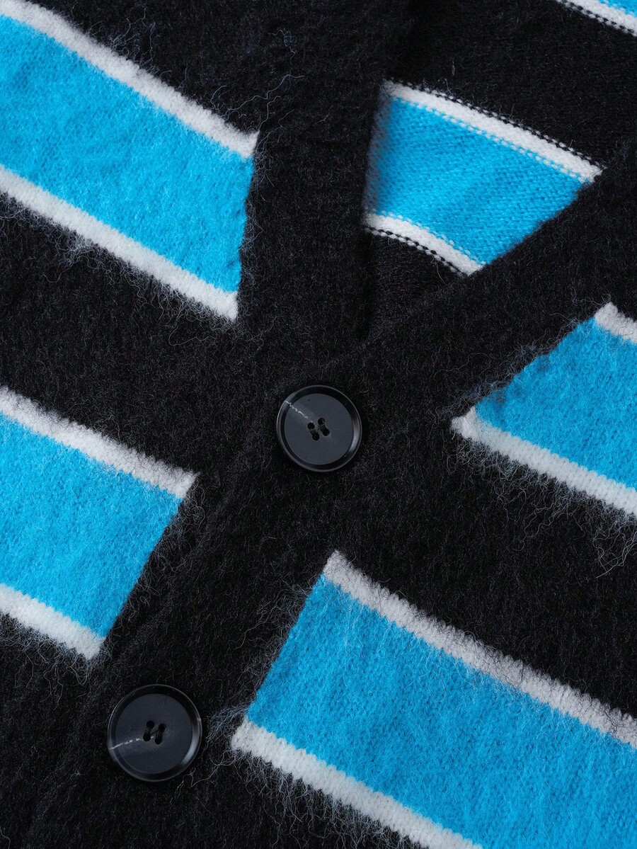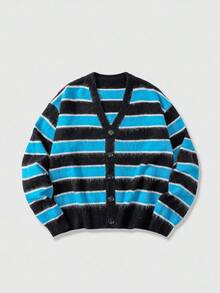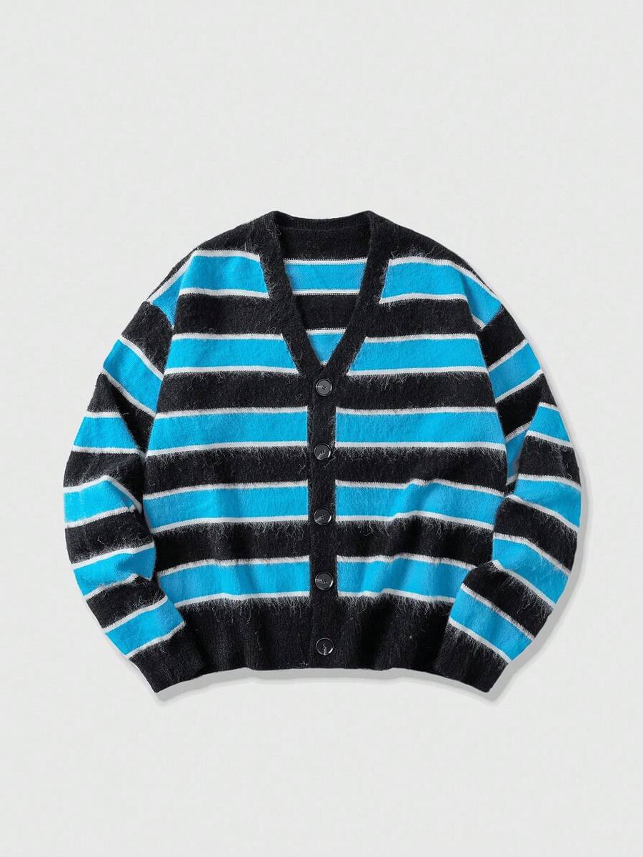 Street Life Men's Striped Jacquard Front Button V-Neck Casual Long Sleeve Cardigan, Fall/Winter
