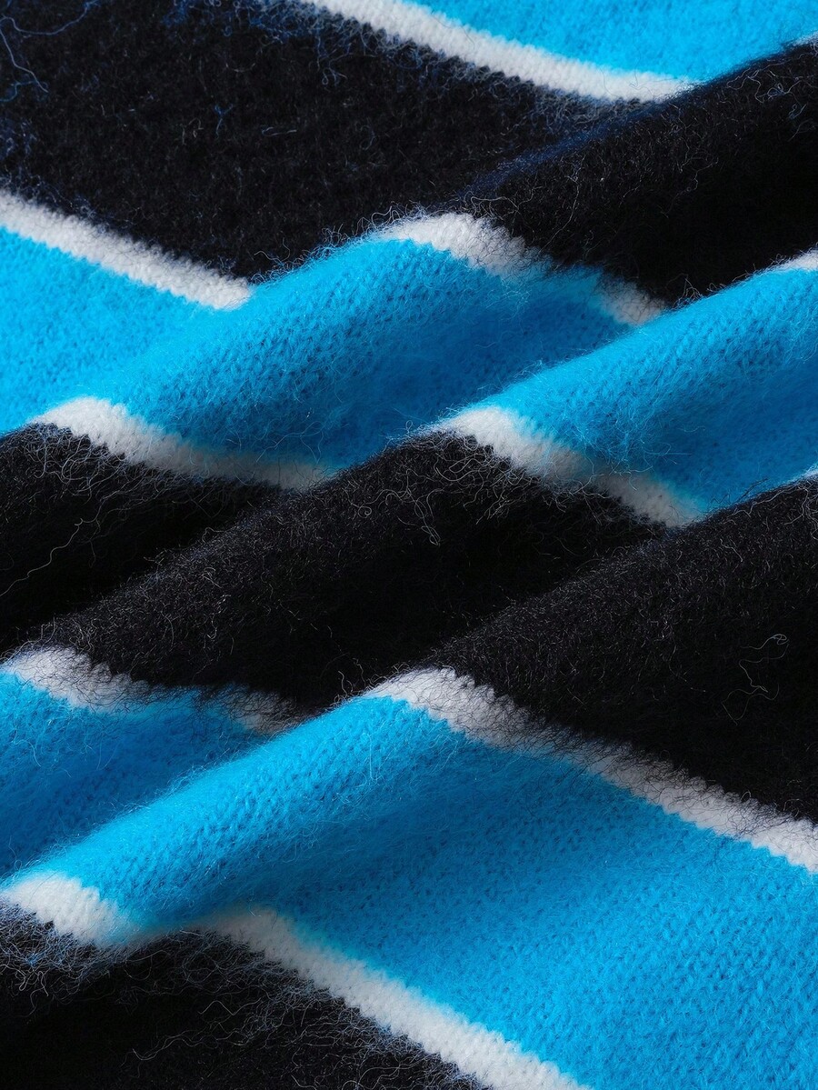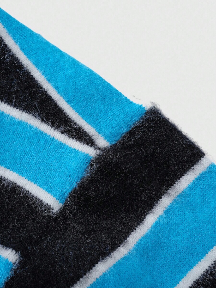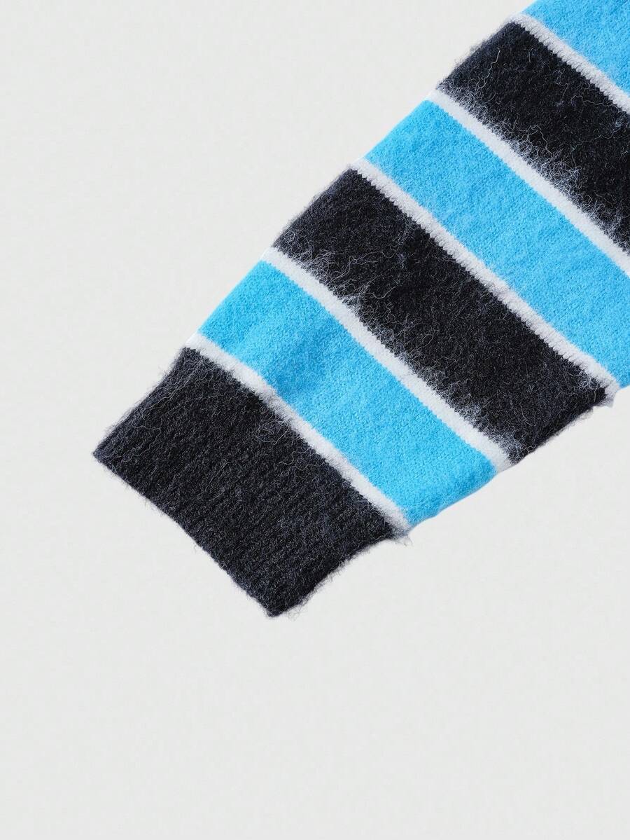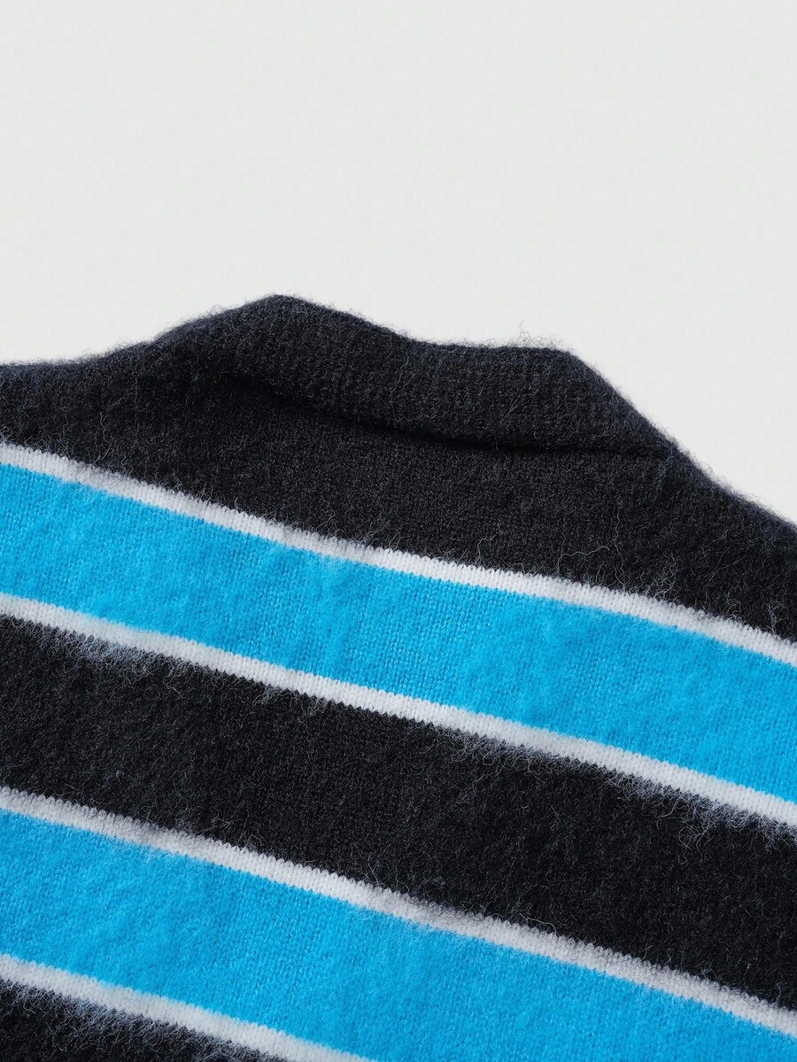 Street Life Men's Striped Jacquard Front Button V-Neck Casual Long Sleeve Cardigan, Fall/Winter