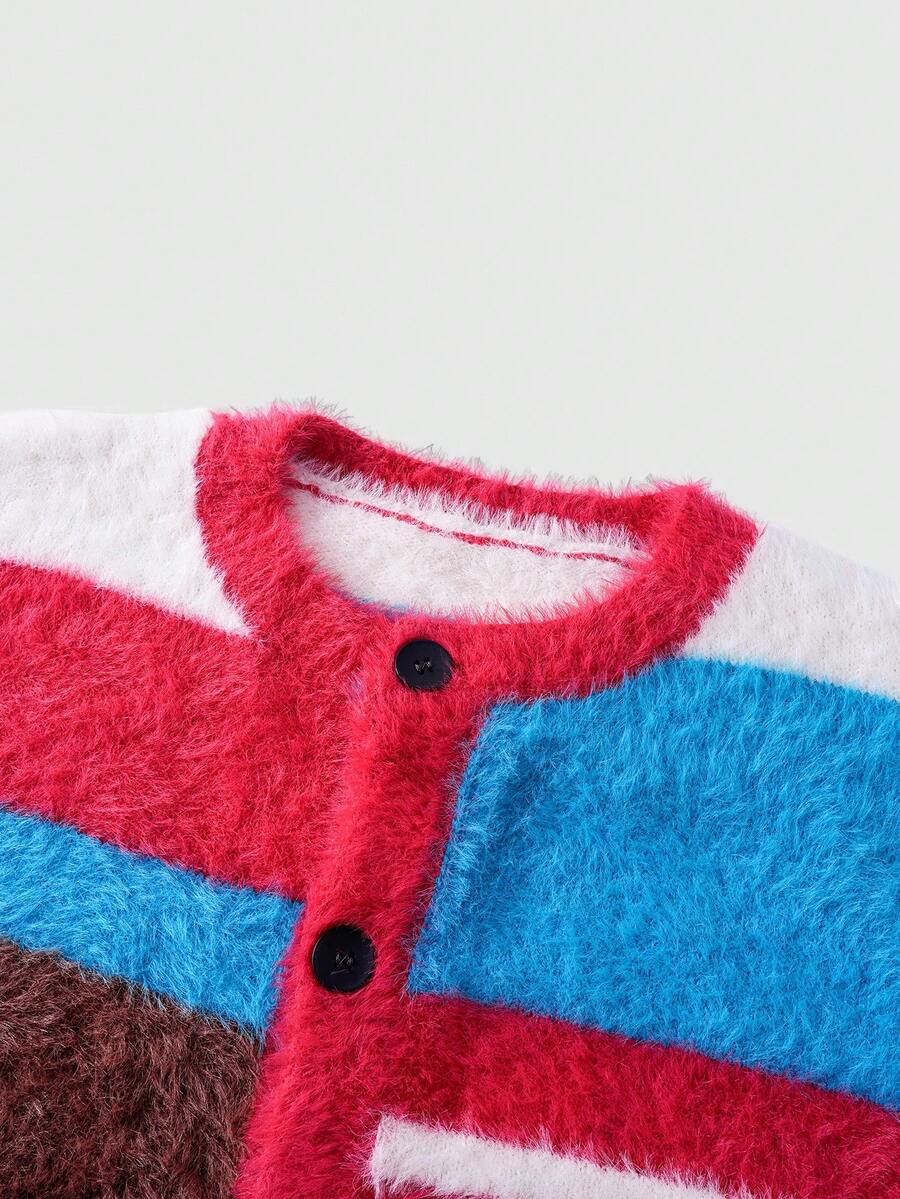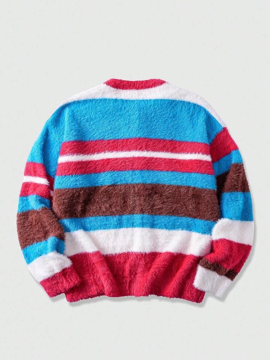 Street Life Men's Striped Long Sleeve Single-Breasted Casual Knit Cardigan, Autumn/Winter