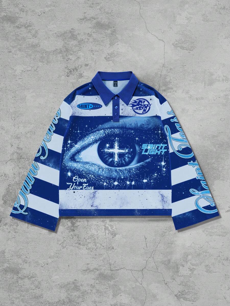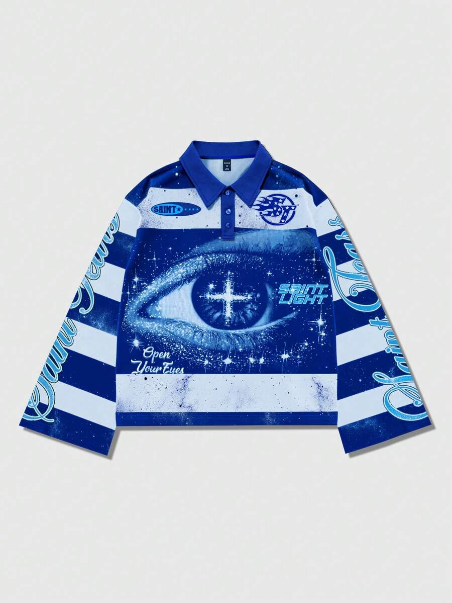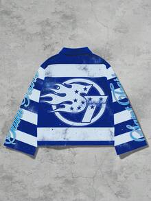 Street Life Men's Striped Polo Collar Long Sleeve T-Shirt, Casual Polo Shirt