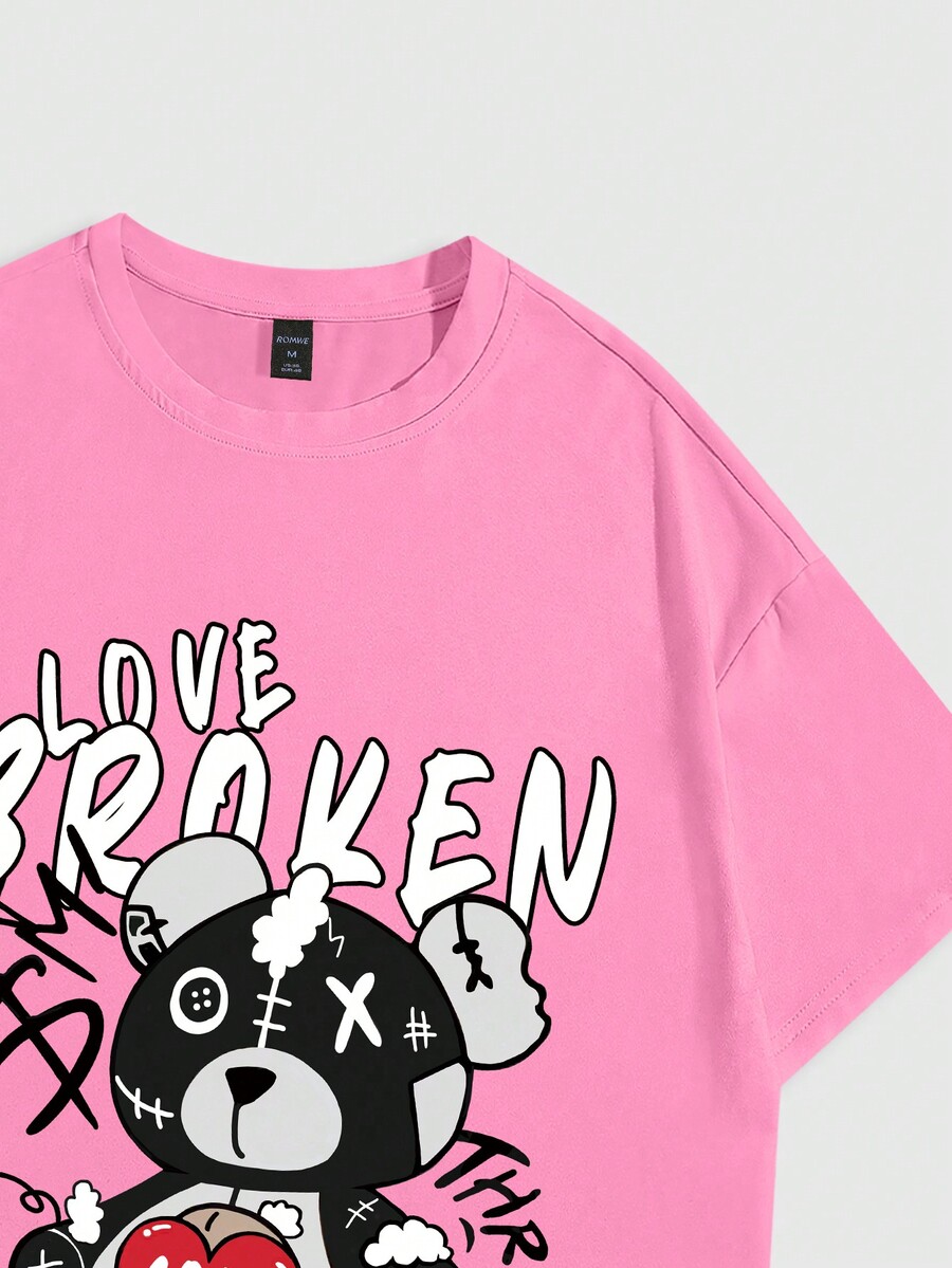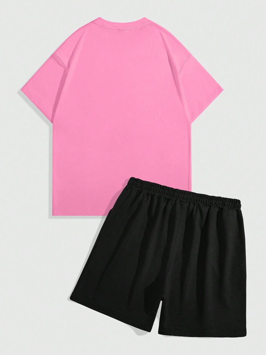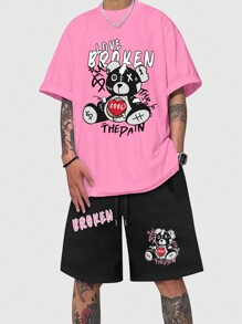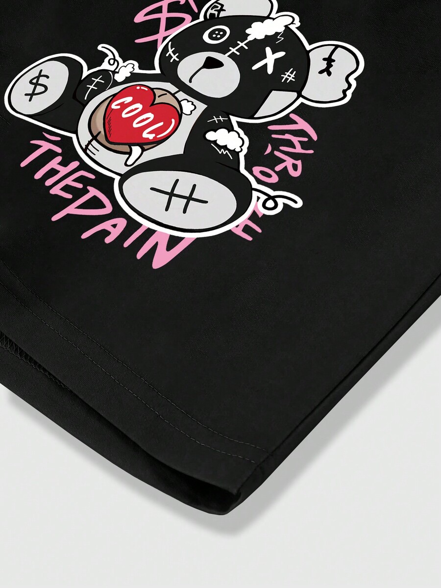 Street Life Men's Summer Bear Printed Round Neck Short Sleeve Casual T-Shirt And Drawstring Waist Shorts Set