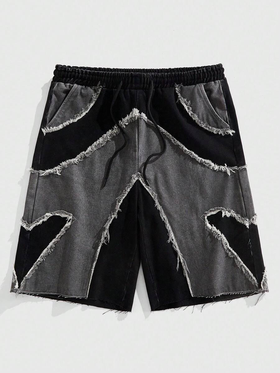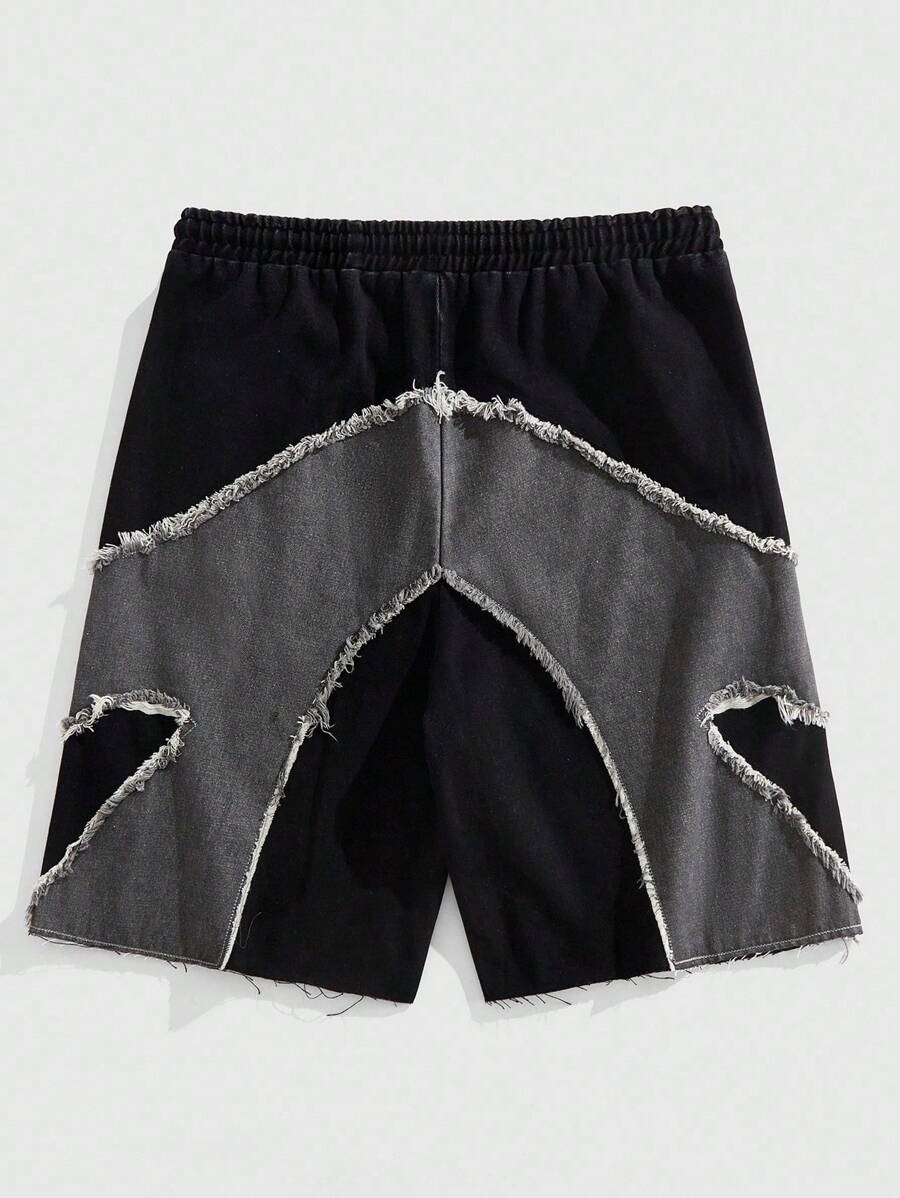Street Life Men's Summer Casual Contrast Color Patchwork Frayed Hem Denim Shorts