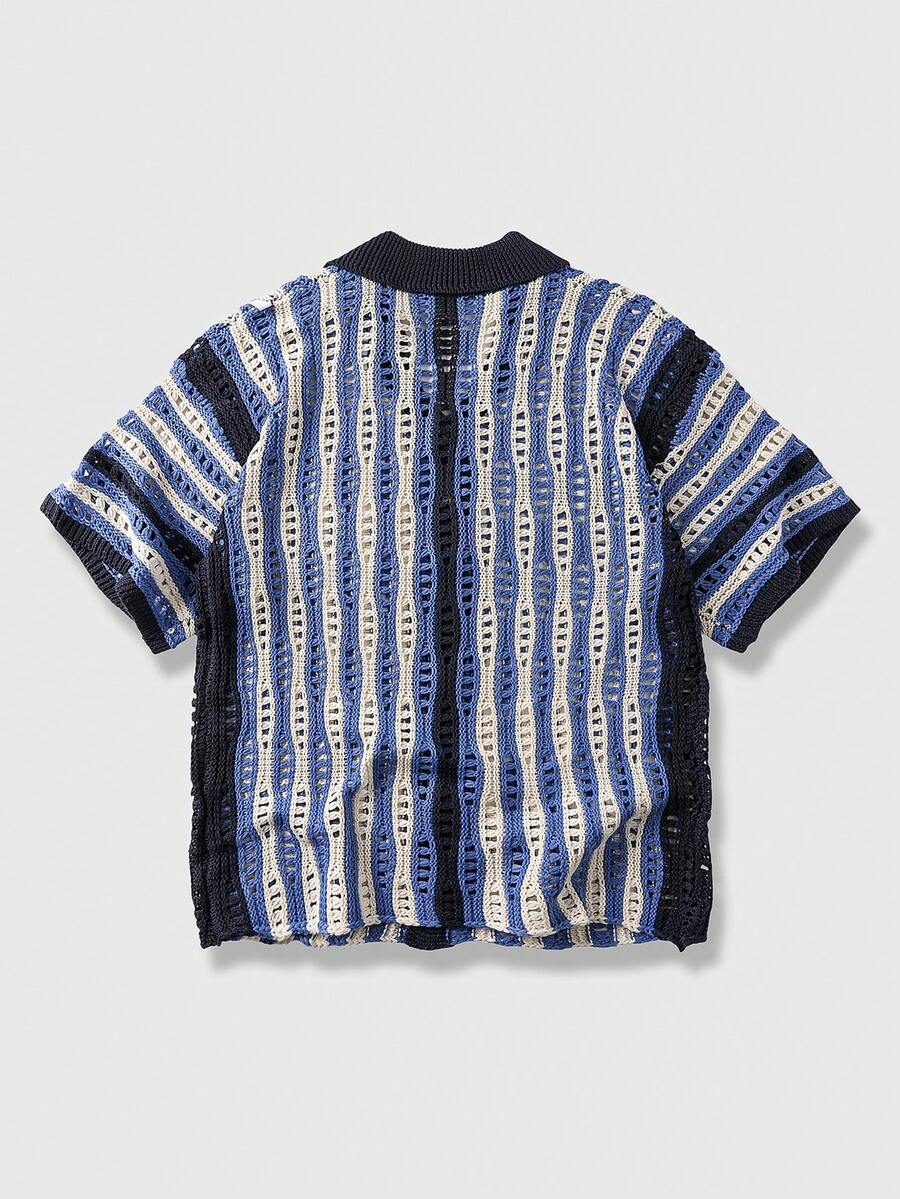Street Life Men's Summer Casual Contrast Stripe Hollow Out Knit Top