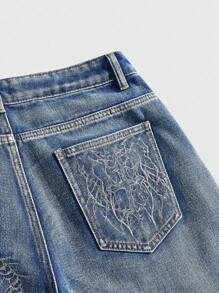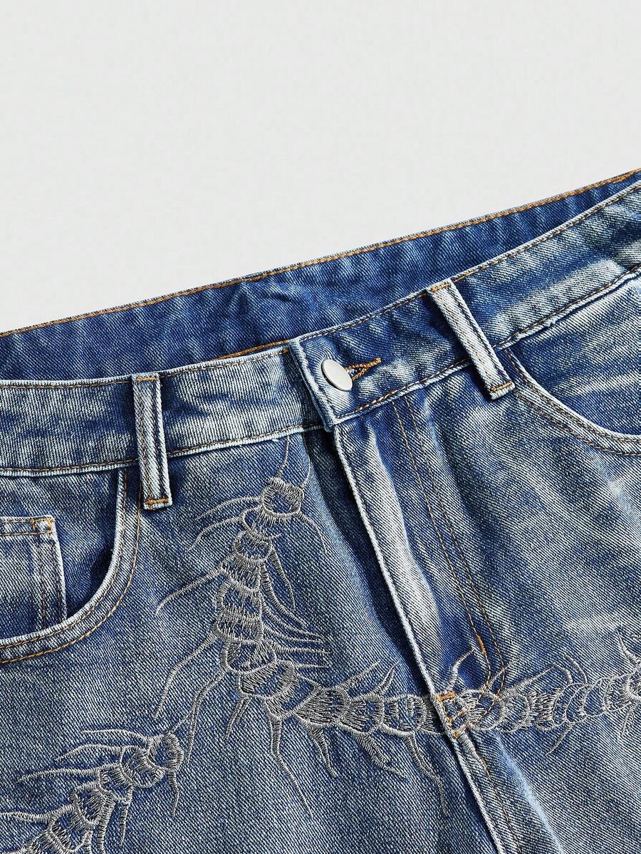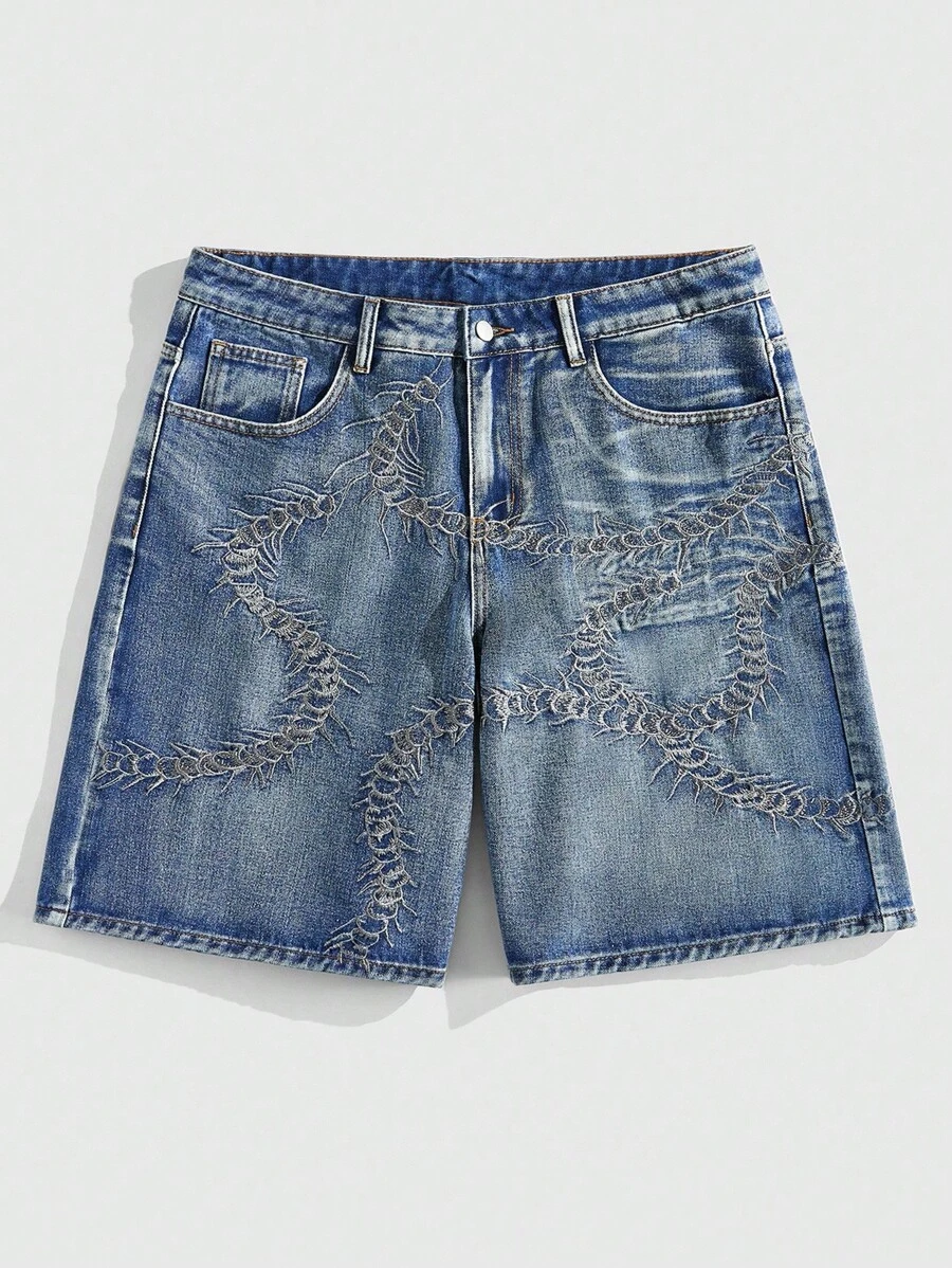 Street Life Men's Summer Casual Washed Denim Embroidered Shorts