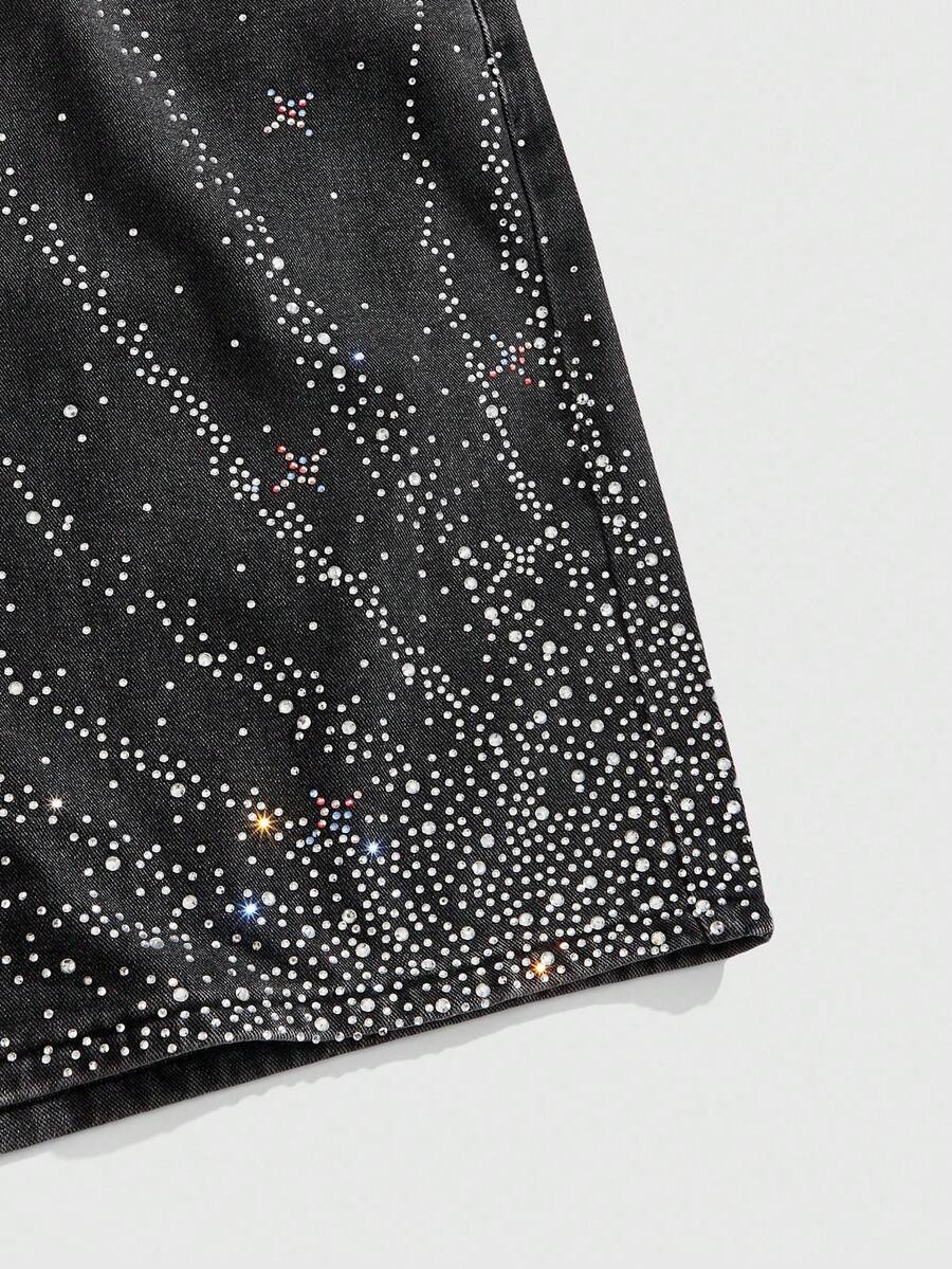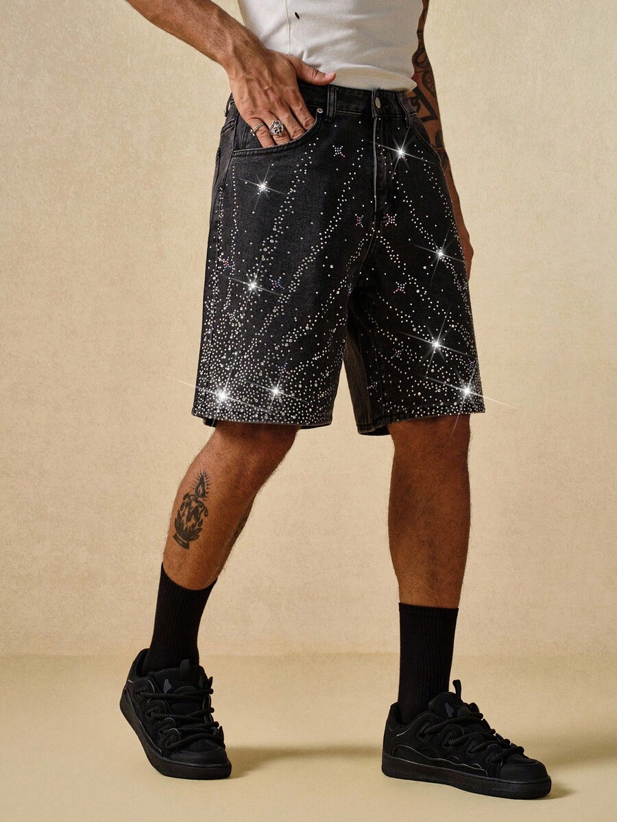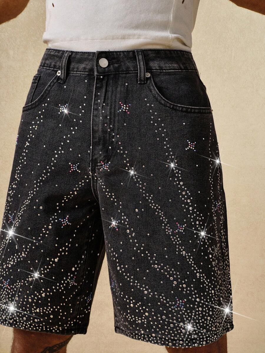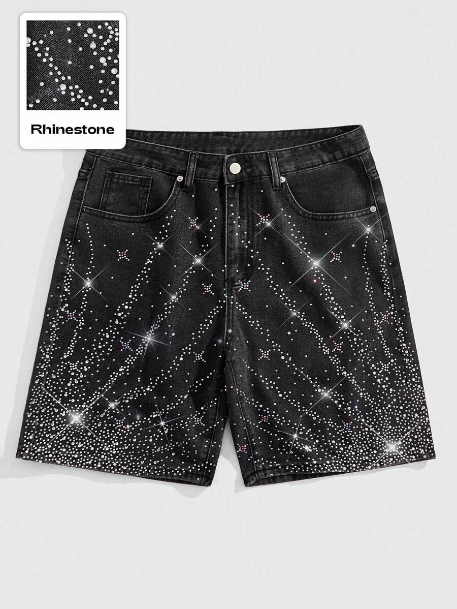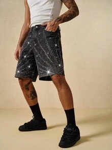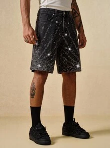 Street Life Men's Summer Fashion Rhinestone Embellished Denim Shorts