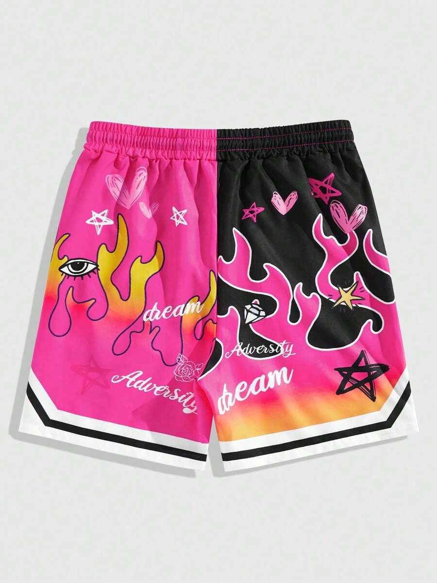 Street Life Men's Symmetrical Flame Printed Woven Basketball Shorts Suitable For Daily Wear In Spring And Summer, School
