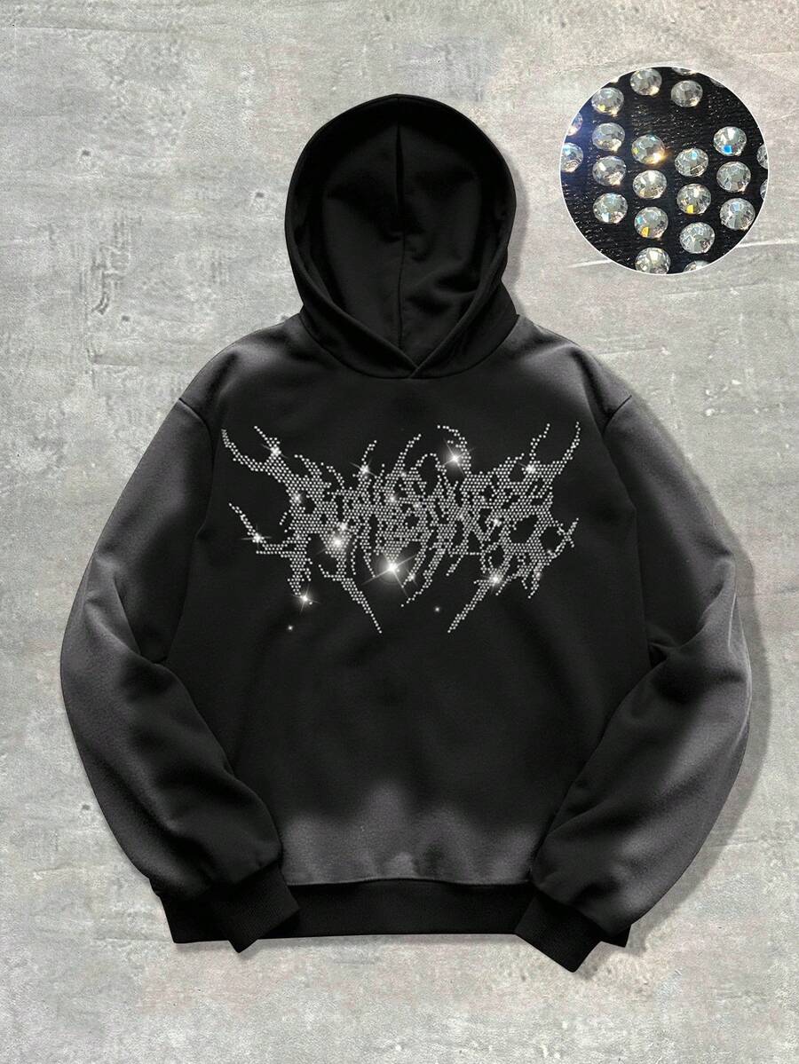 Goth Men's Tie-Dye Pattern Long Sleeve Casual Loose Hoodie Sweatshirt (Random Rhinestone Decor)